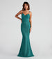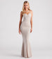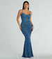 Light-catching glitter on the Kelsie formal dress creates a dazzling enchantment for your celebration party. She features a sleeveless. sweetheart neck. spaghetti straps. a built-in padded bust with a center front ruched seam atop her corset-style bodice with trim detail. Flaunt your figure in her curve-loving mermaid silhouette that effortlessly flows into the flared floor-length hem. The formal dress is composed of a glitter stretch-knit fabric with an inner knit lining and a moderate stretch. Complete your formal look with a silver clutch and hoop earrings.