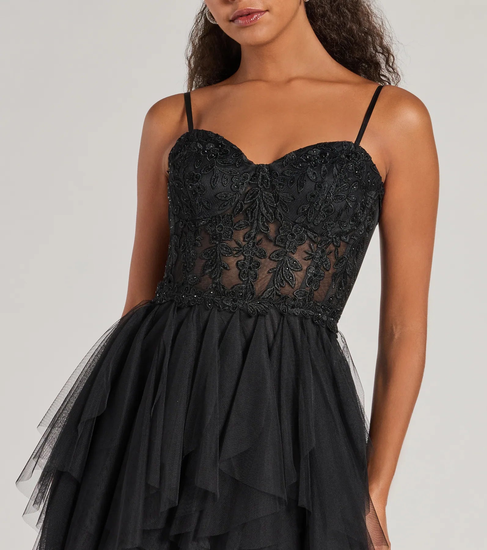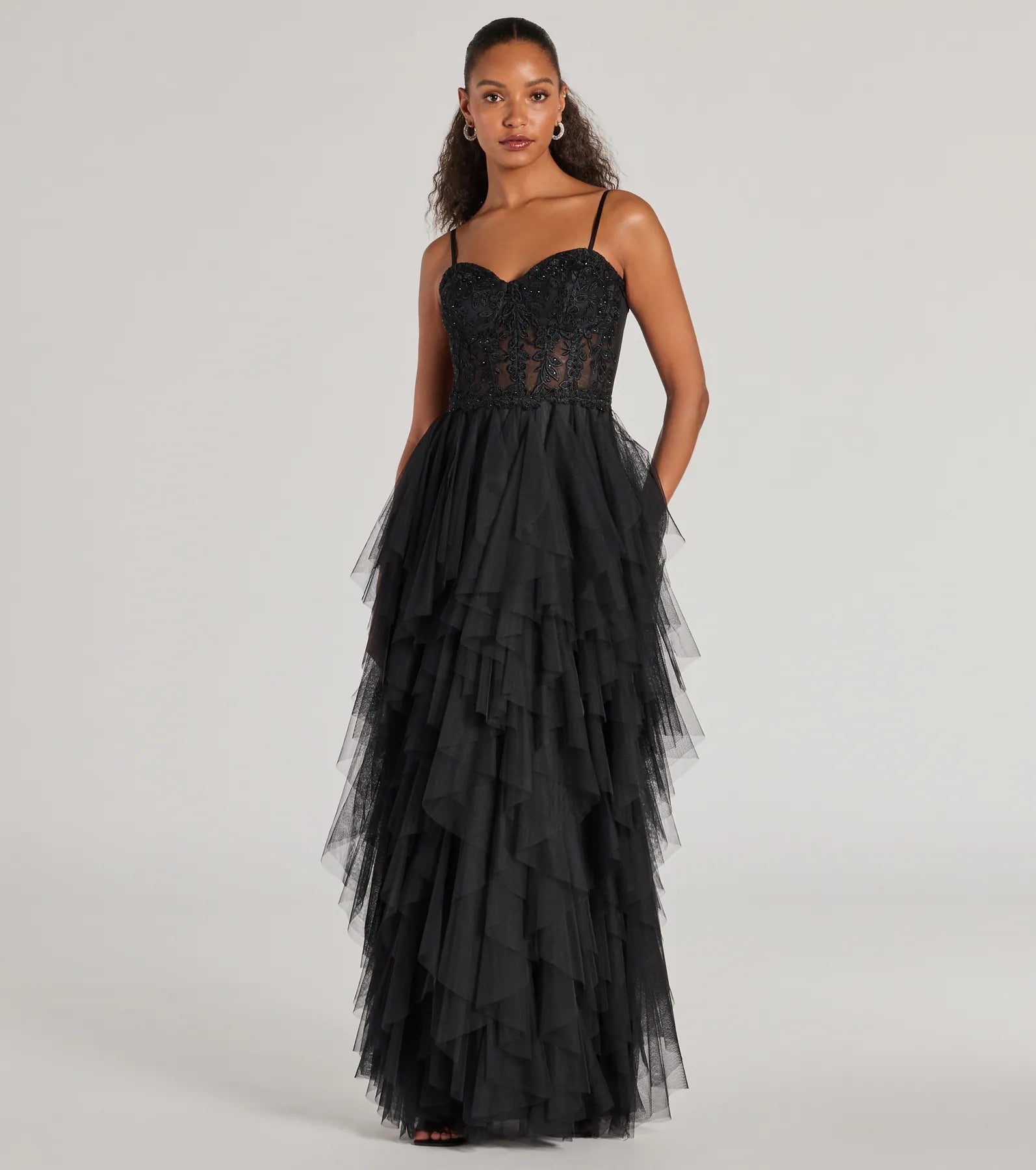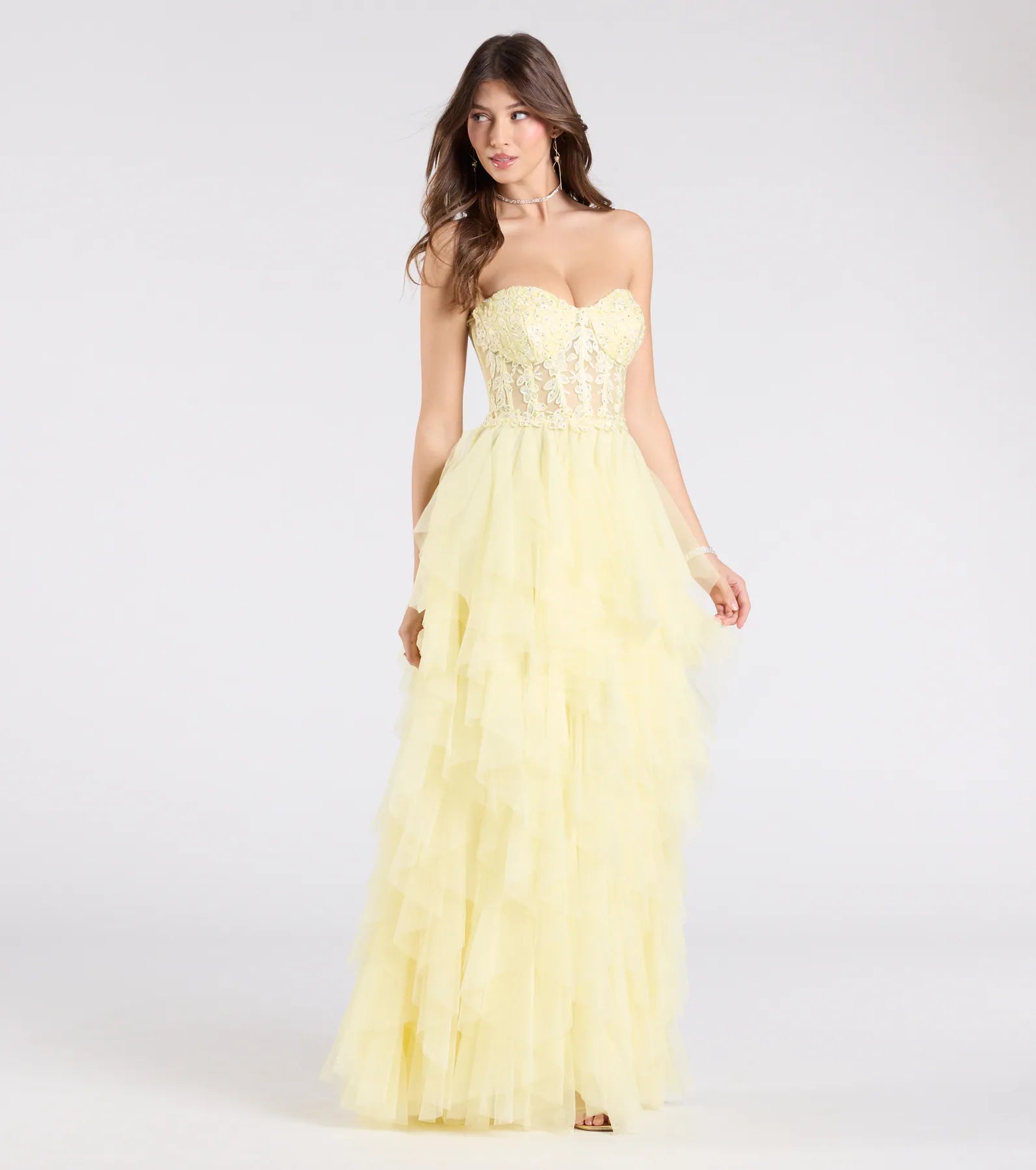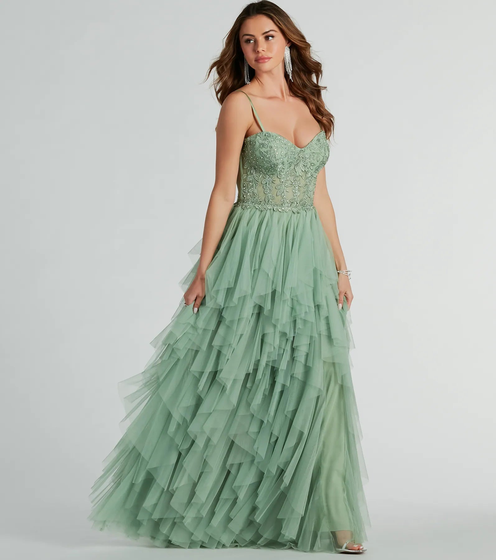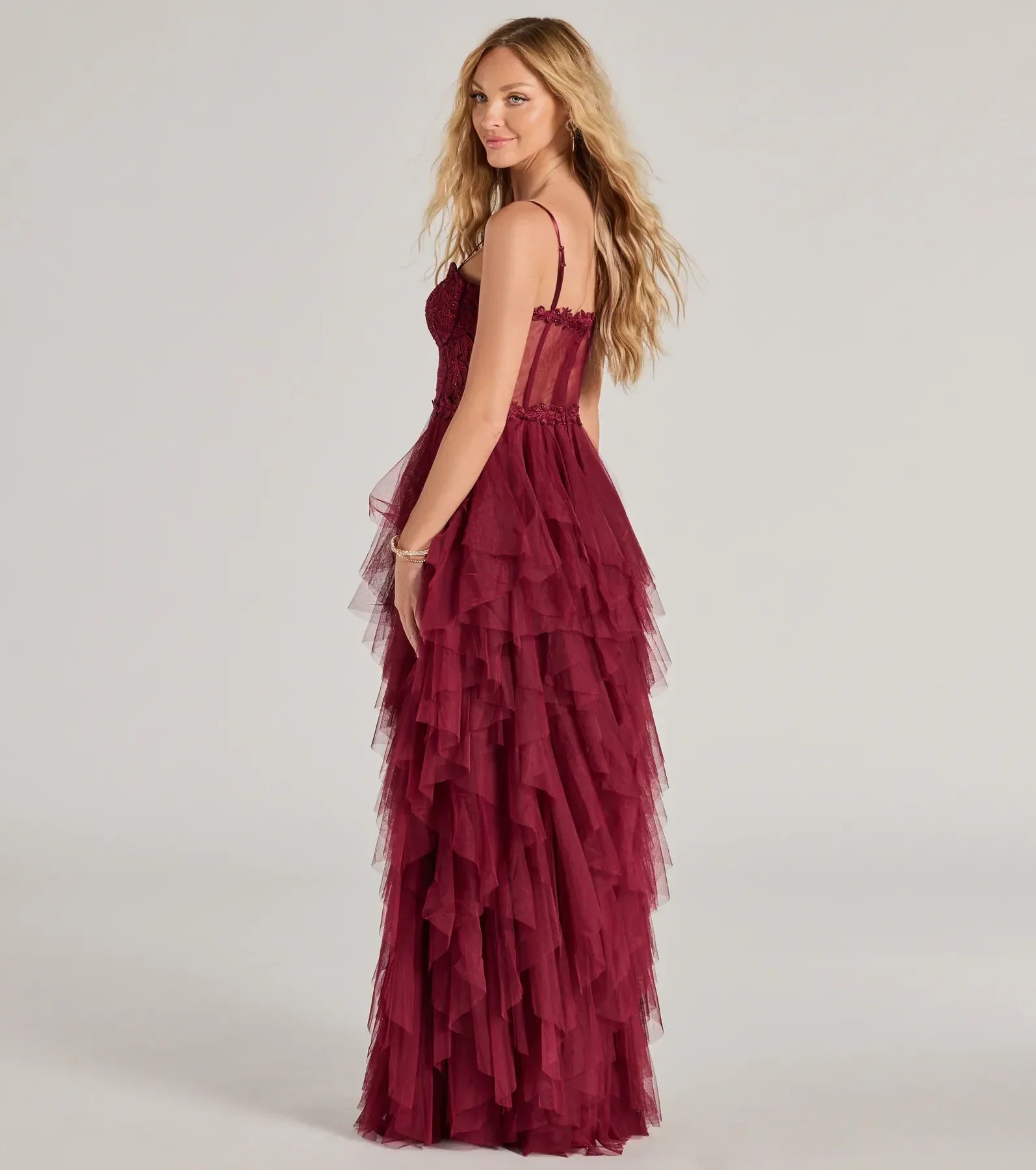 Keyla Floral Applique Tiered Ruffle Tulle Gown