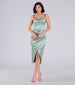 Kiley Cowl Neck Wrap Satin Midi Formal Dress