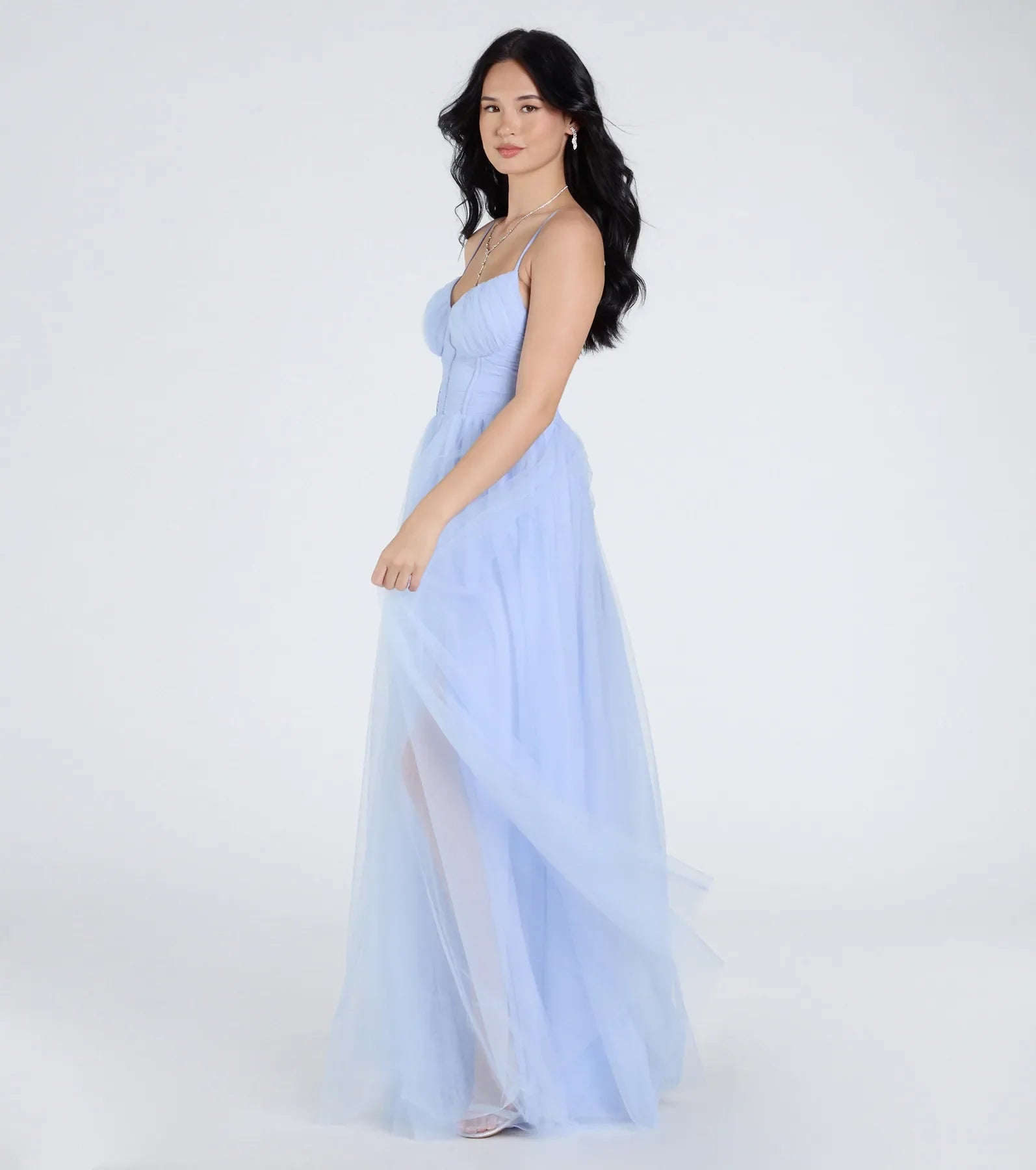 Kim Corset Slit A-Line Tulle Formal Dress