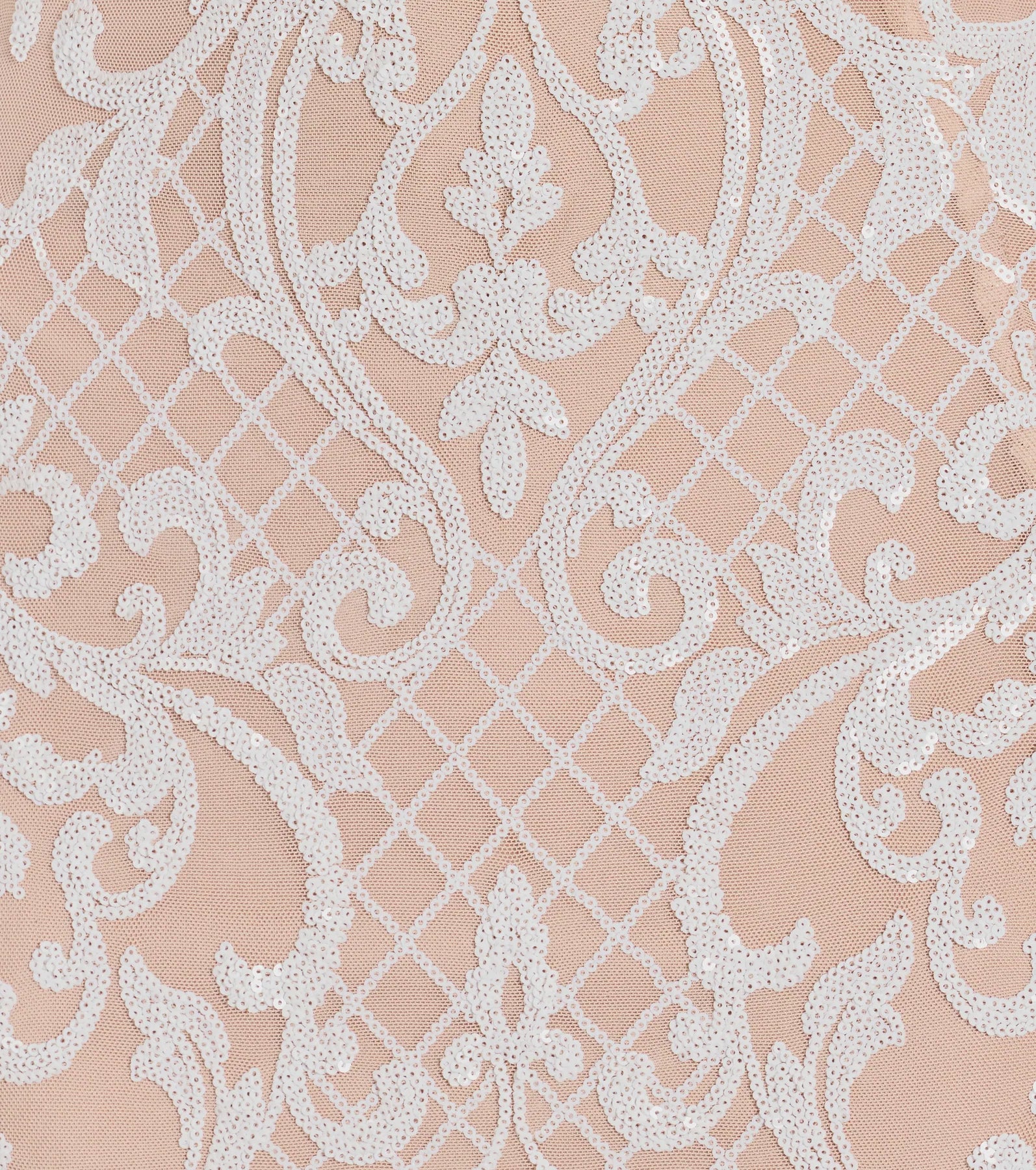 Captivating sequins lend endless sparkle while the scroll pattern elevates the Krissy formal midi dress sure to make a lasting impression! She features a sleeveless sweetheart neckline. a padded bust. adjustable spaghetti straps. a corset-style bodice with flexible boning to give you a snatched appearance. a flattering bodycon silhouette. a front slit. and a midi-length hem. The formal dress is designed with a shimmering sequin scroll pattern with a chic lace effect. Complete your look for a rehearsal dinner or banquet in strappy rhinestone heels.
