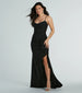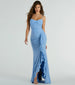 The Laney ruffled slit glitter knit mermaid dress will showcase glam perfection at black-tie weddings or galas! Designed with a gorgeous glitter knit fabric offering moderate stretch. you'll exude a dazzling elegance that will spark up all the compliments. Her sleeveless bodice is shaped with a V-neckline with chic ruched detailing and spaghetti straps. She features an alluring front ruffled accent that cascades down. leading to a high-cut front slit to reveal some leg on the form-hugging mermaid silhouette. Complete your look with rhinestone chandelier earrings.
