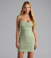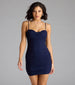 Create an iconic party look with this gorg rhinestone and pearl embellished mini dress! It features a sleeveless sweetheart neckline with a cowl draped overlay. a built-in padded bust. adjustable spaghetti straps for a customized fit. a mini-length hem. side and back ruching. a bodycon silhouette. and all-over mini rhinestone and faux pearl embellishments for a stunning glam vibe. The sheer mesh fabric includes a full knit lining. Style this mini-length dress for your next night out with rhinestone statement earrings and strappy stilettos.