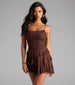 Arrive on the scene like a daydream in this lace skater dress with flirty ruffles and mini-length...