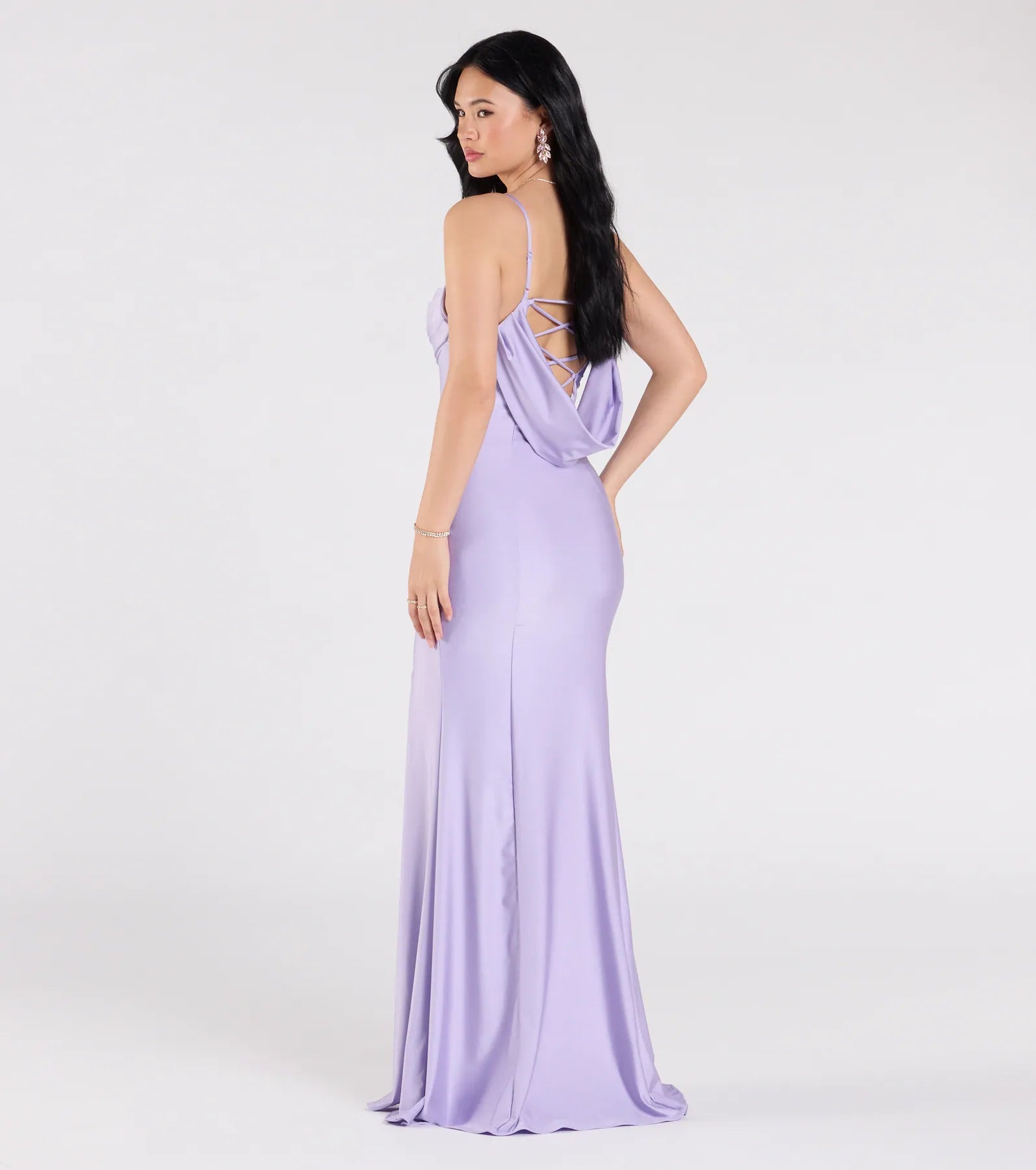 Lizzie Lace-Up Cowl Back Slit Formal Dress