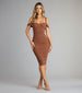 Looking Fab Cold-Shoulder Ruched Bodycon Midi Dress