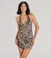 You'll love the sultry details of this leopard print mini dress featuring a sleeveless plunging V-neckline with...