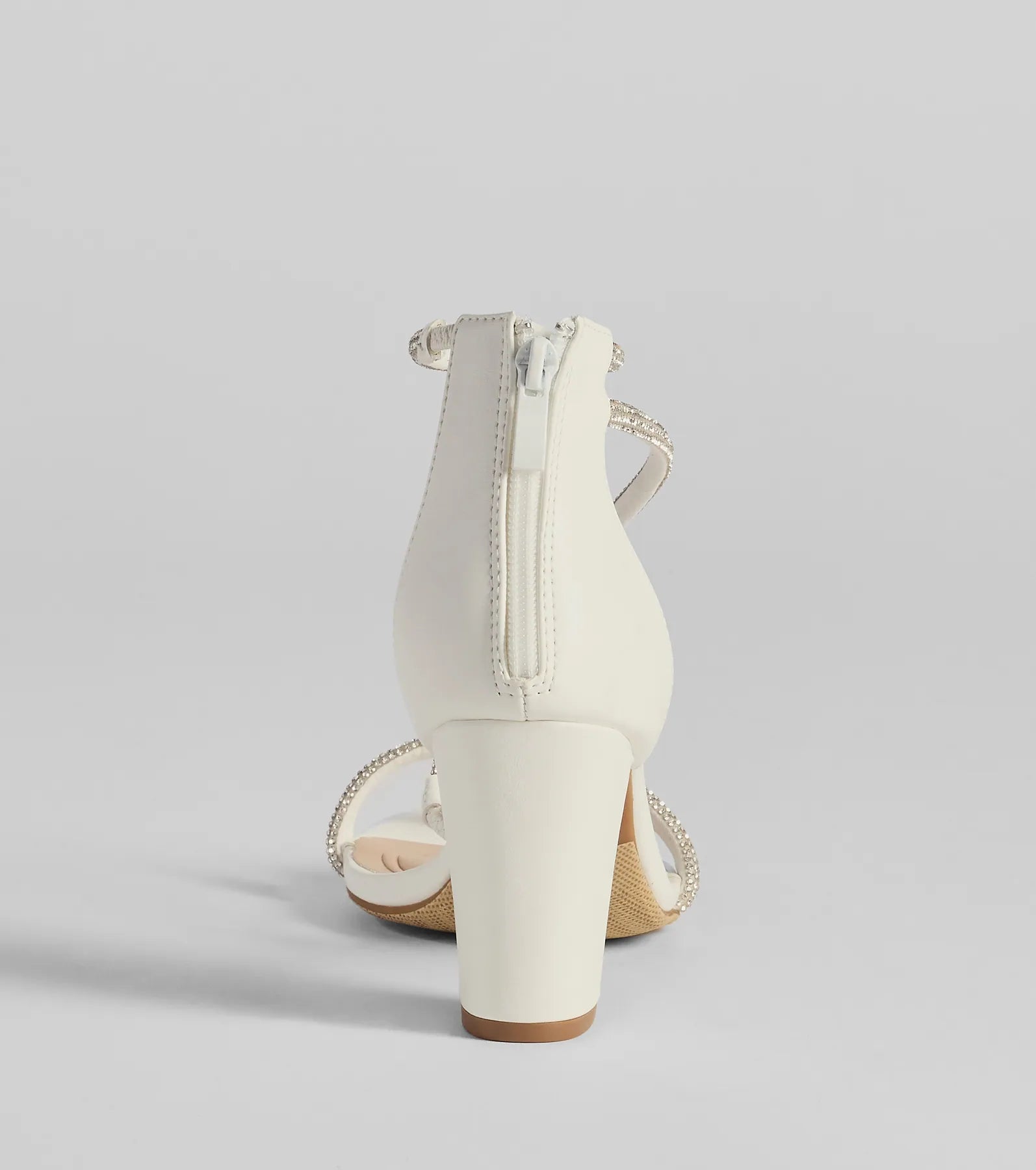 The perfect glam block heels for the girl who loves to sparkle! They feature sparkling rhinestone embellished...