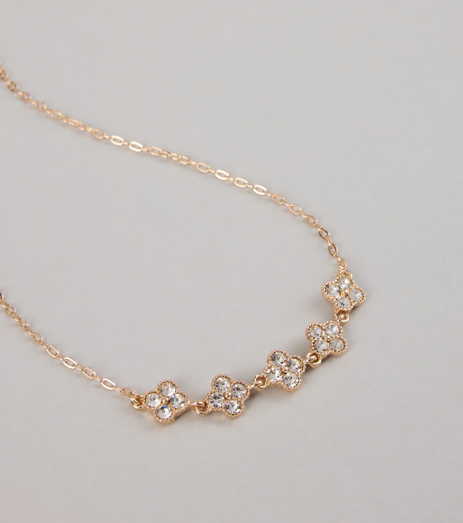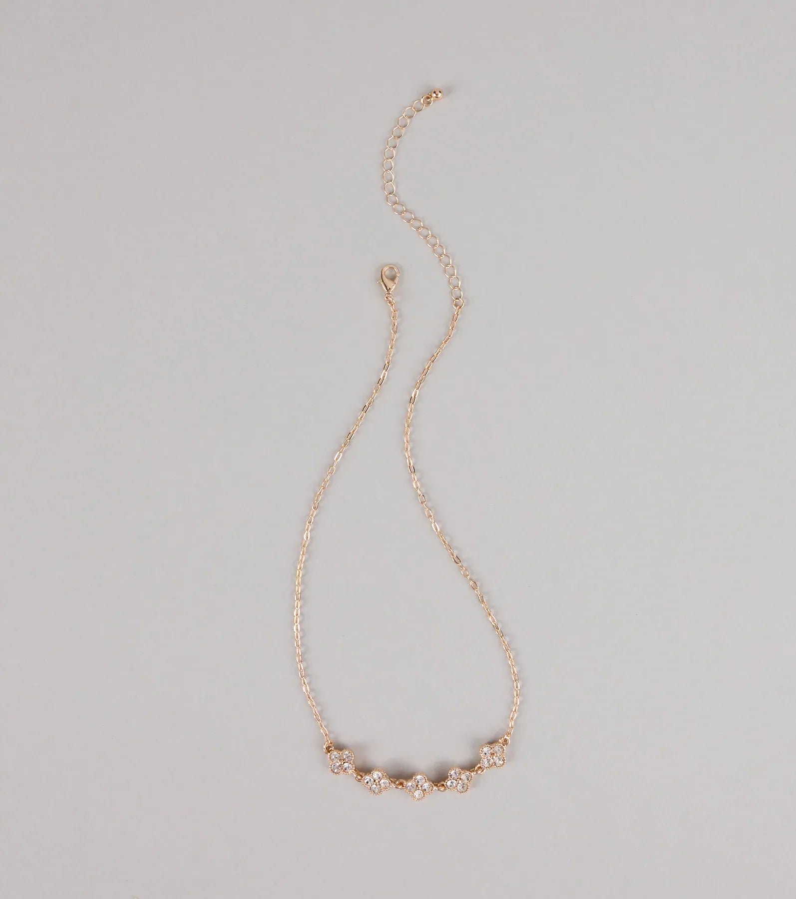 Manifest it. babe. This rhinestone clover charm necklace is your daily dose of sparkle and good vibes—perfect...
