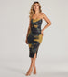 Draw in all the compliments with your allure in this abstract midi dress at semi-formal parties or...