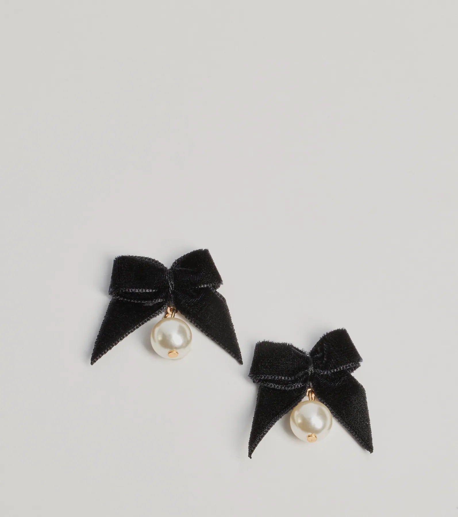 Fit & Features Velvet bow design Faux pearl drop design Post-back closure Earrings are final sale and...