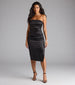 Make your dreams of luxe come true in this strapless satin midi dress! The dress is designed...