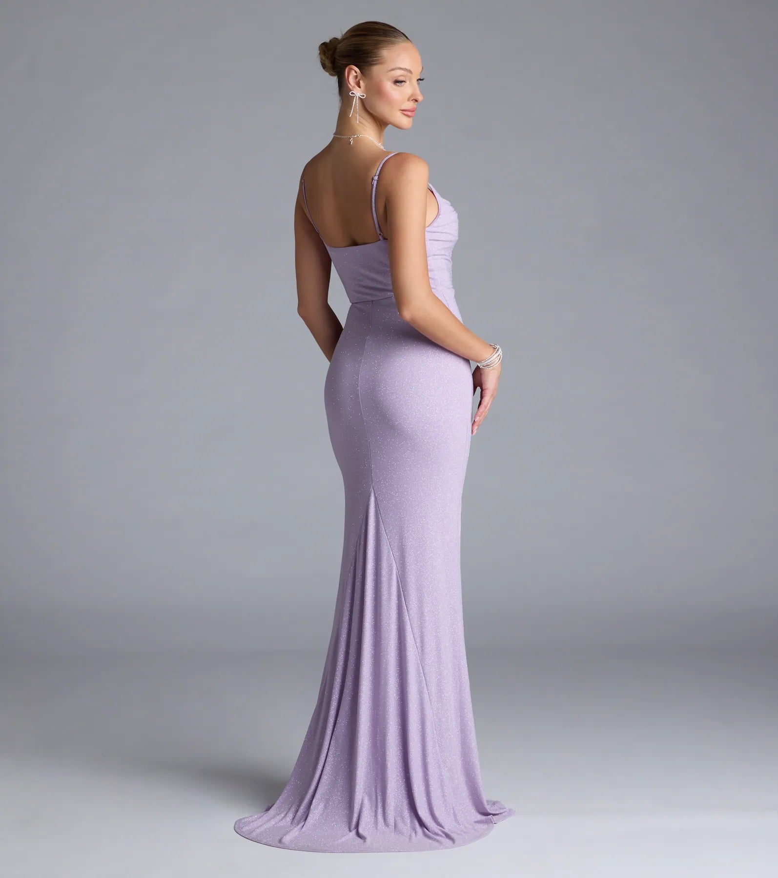Special OccasionSparkly and fabulous! Make a shimmering impression in the Madison glitter formal dress showcasing a high...