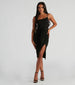 Bring major charm in this one-shoulder midi dress showcasing a sleek and sultry silhouette perfect for flaunting...