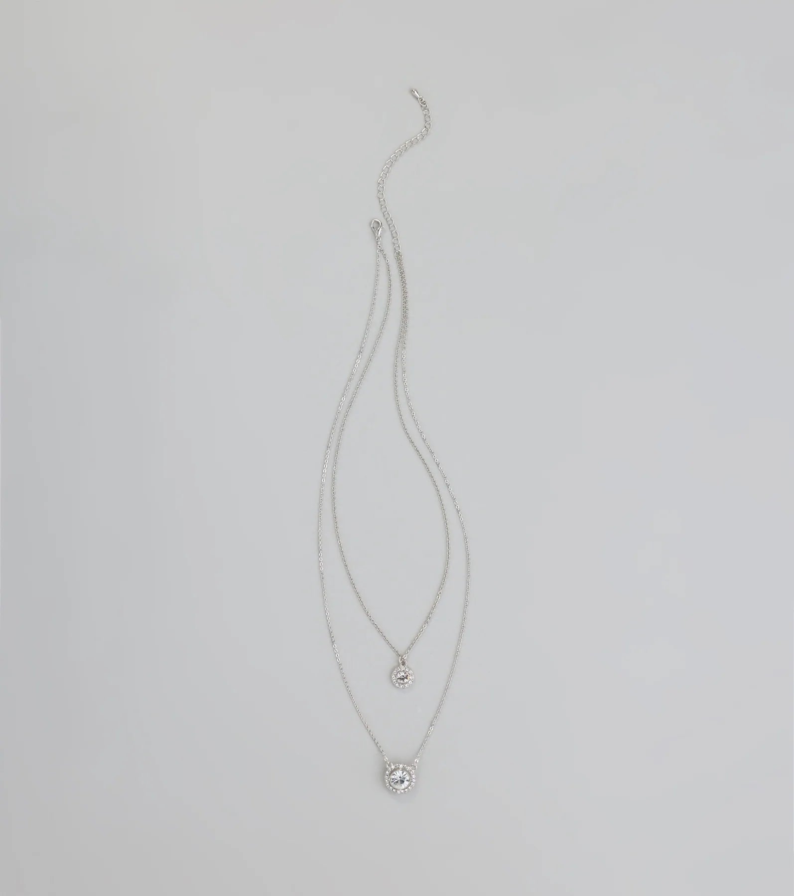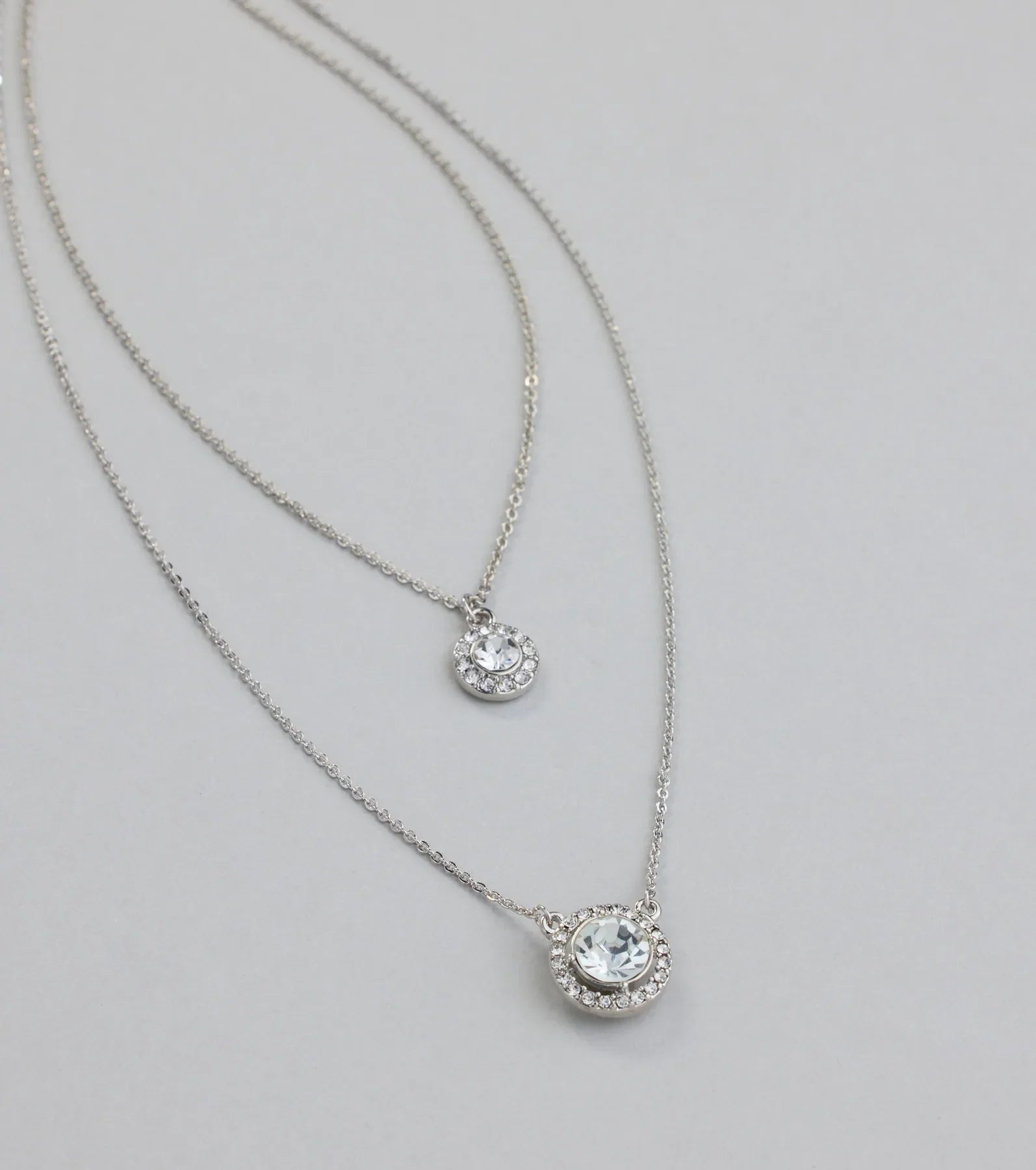 Adorned with exquisite rhinestone round halo charms and layered for a trendy look. this necklace is sure...