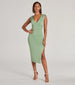 A stunning sleeveless midi dress features a V-neckline. bodycon silhouette. and a flirty side slit. Style with...