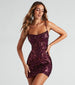 Special OccasionOh-so-alluring. create a bold formal look in the Marie sleeveless sequin mini dress. She features a...