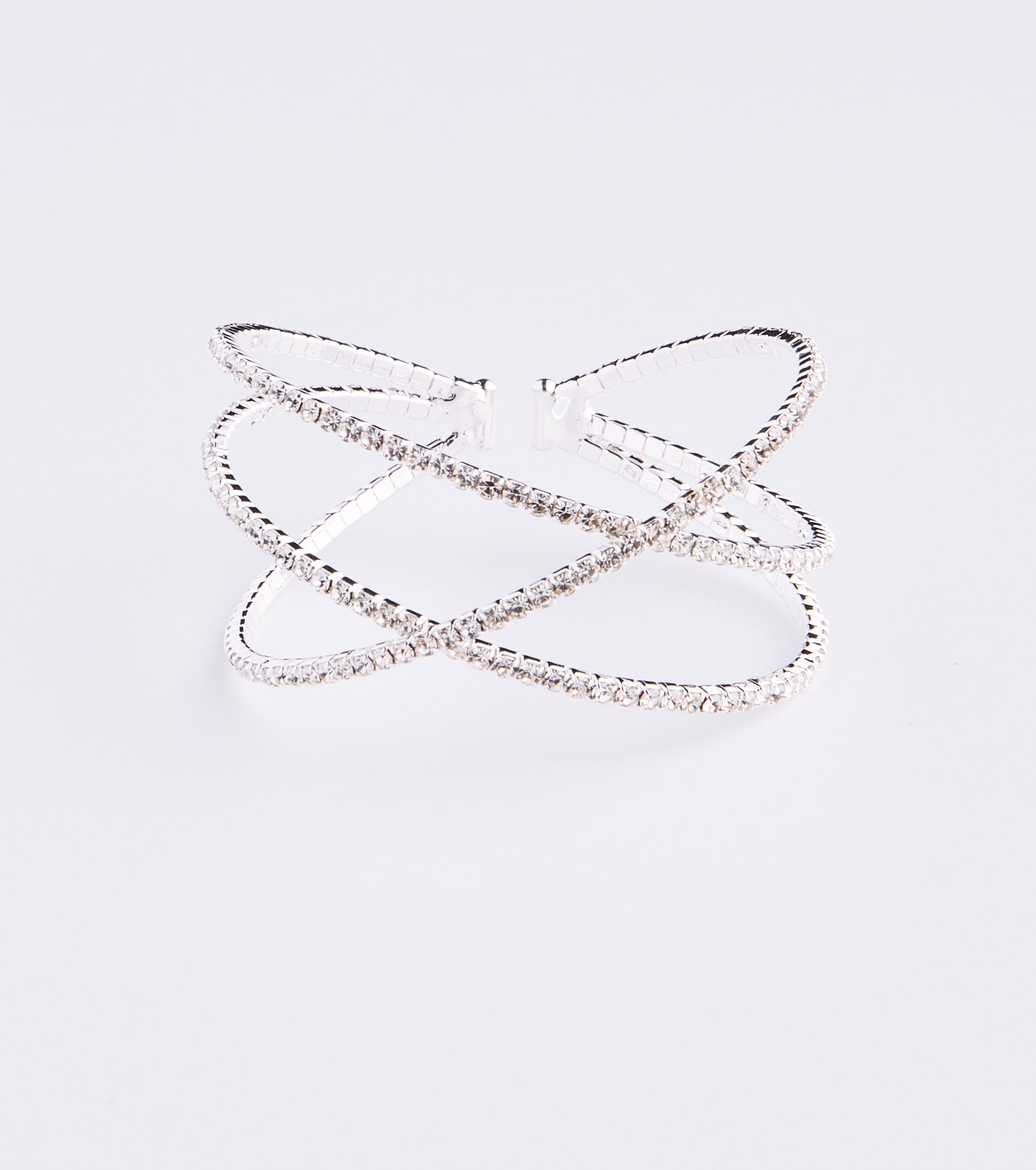 Finish your look with a bit of dazzle with this rhinestone cuff. This memory wire cuff features...