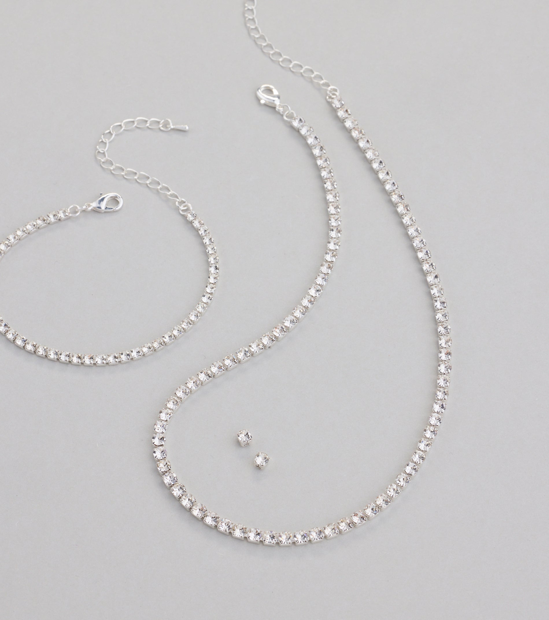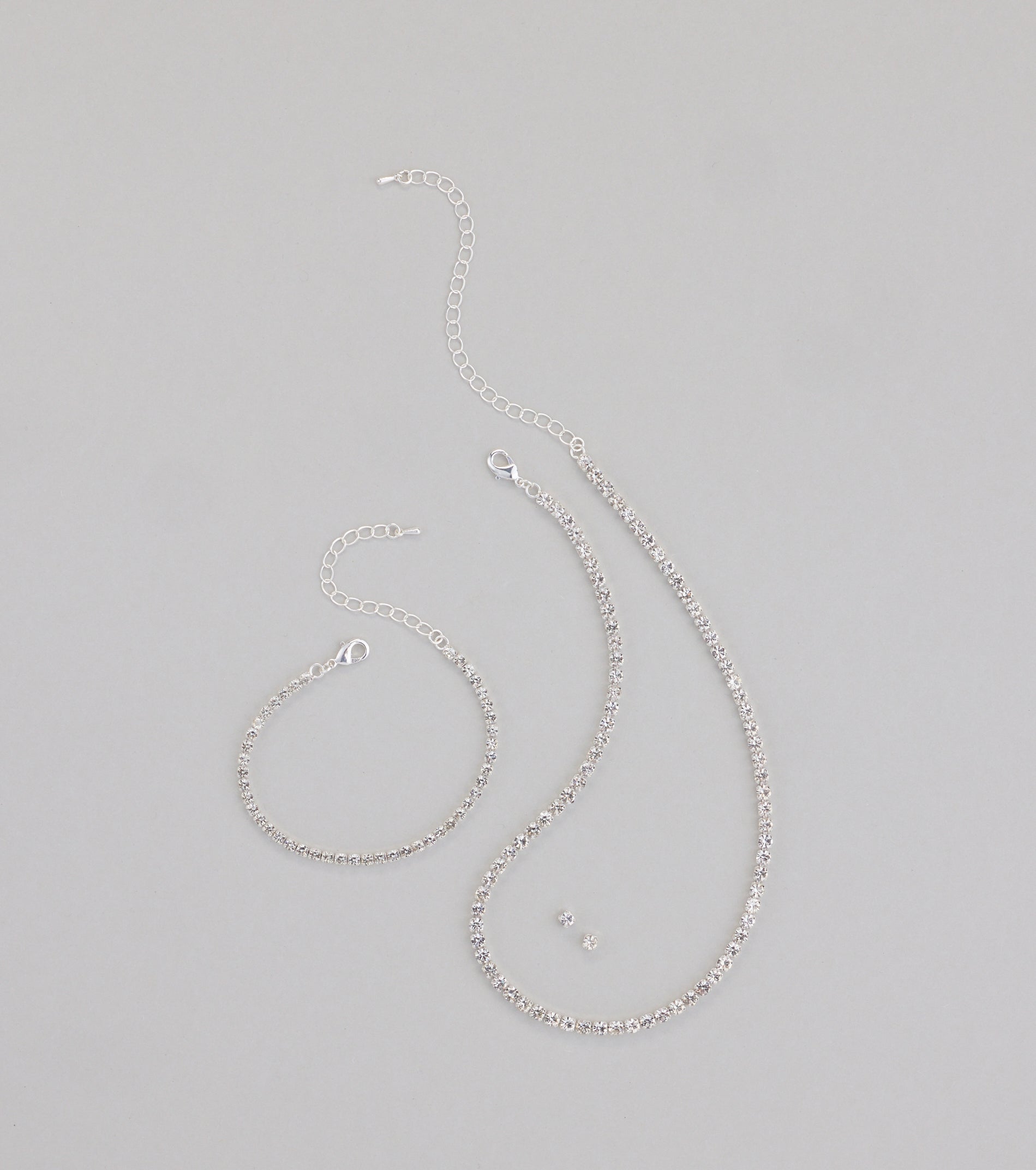 Add a glamorous touch to your formal dress with this jewelry set. This dazzling rhinestone trio catches...