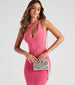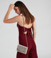 Shine on for a moment of luxe with this chic convertible wristlet! This style must-have can be used as a glam wristlet for a night out with the squad or a sleek crossbody. The wristlet features an envelope design. front rhinestone embellishments. a contrasting faux leather material. a faux leather wristlet strap. and a chain-link shoulder strap. Complete the look with the matching sparkly belt and heels!