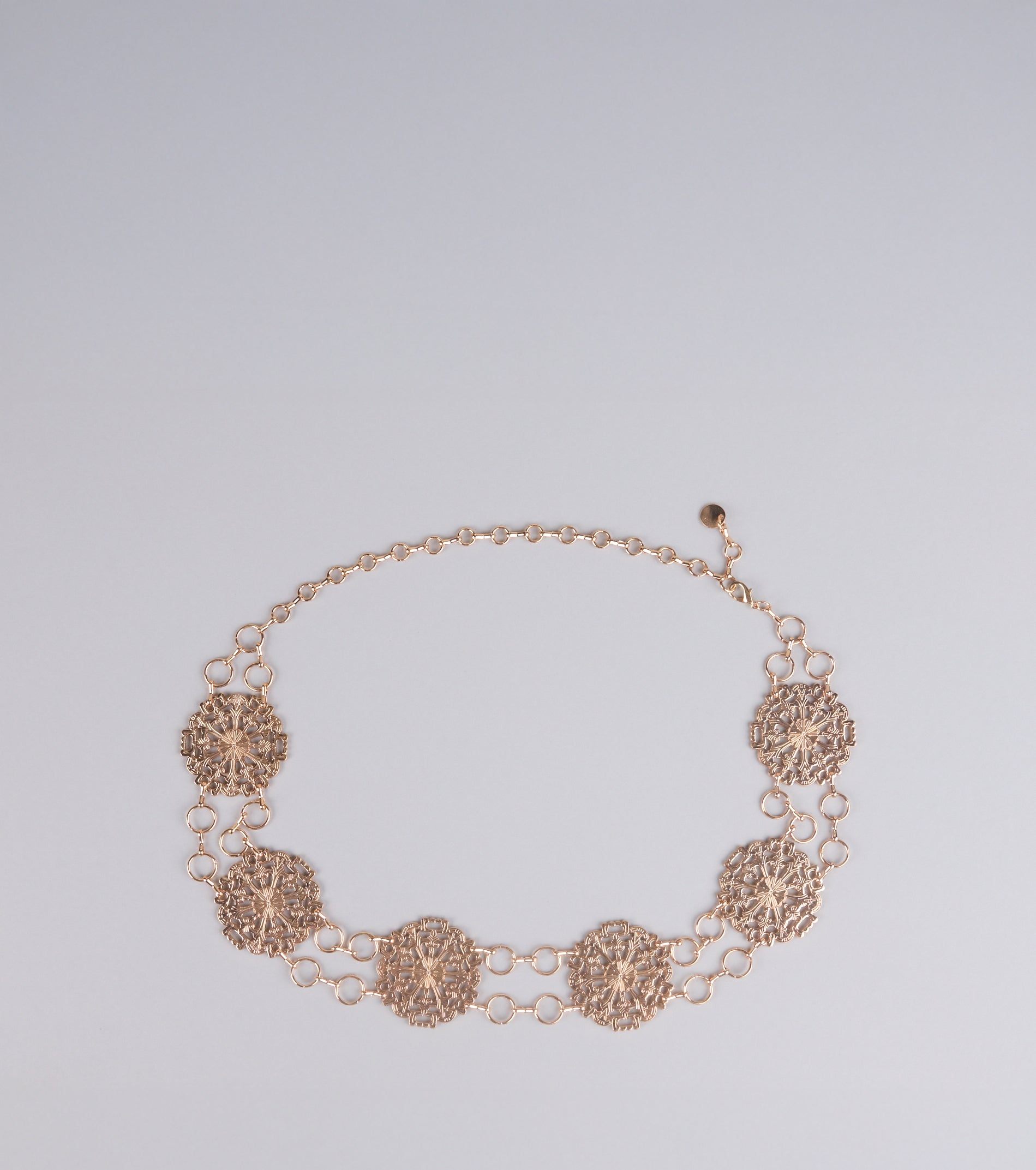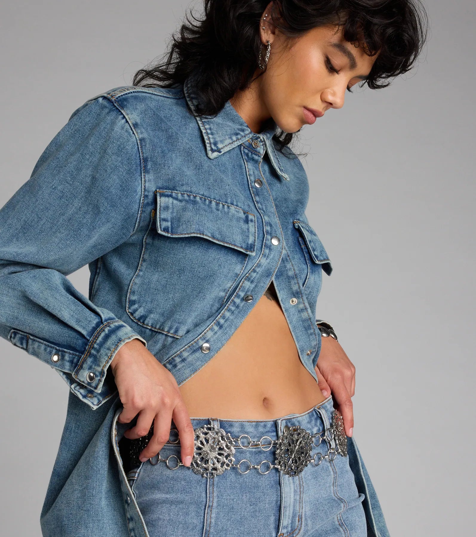Intricately crafted conchos paired with a layered o-ring chain design. this belt adds a bold look that...