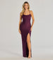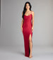 Natalie Cowl Neck Lace-Up Slit Column Dress