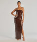 Naya Lace-Up High Slit Sequin Column Dress