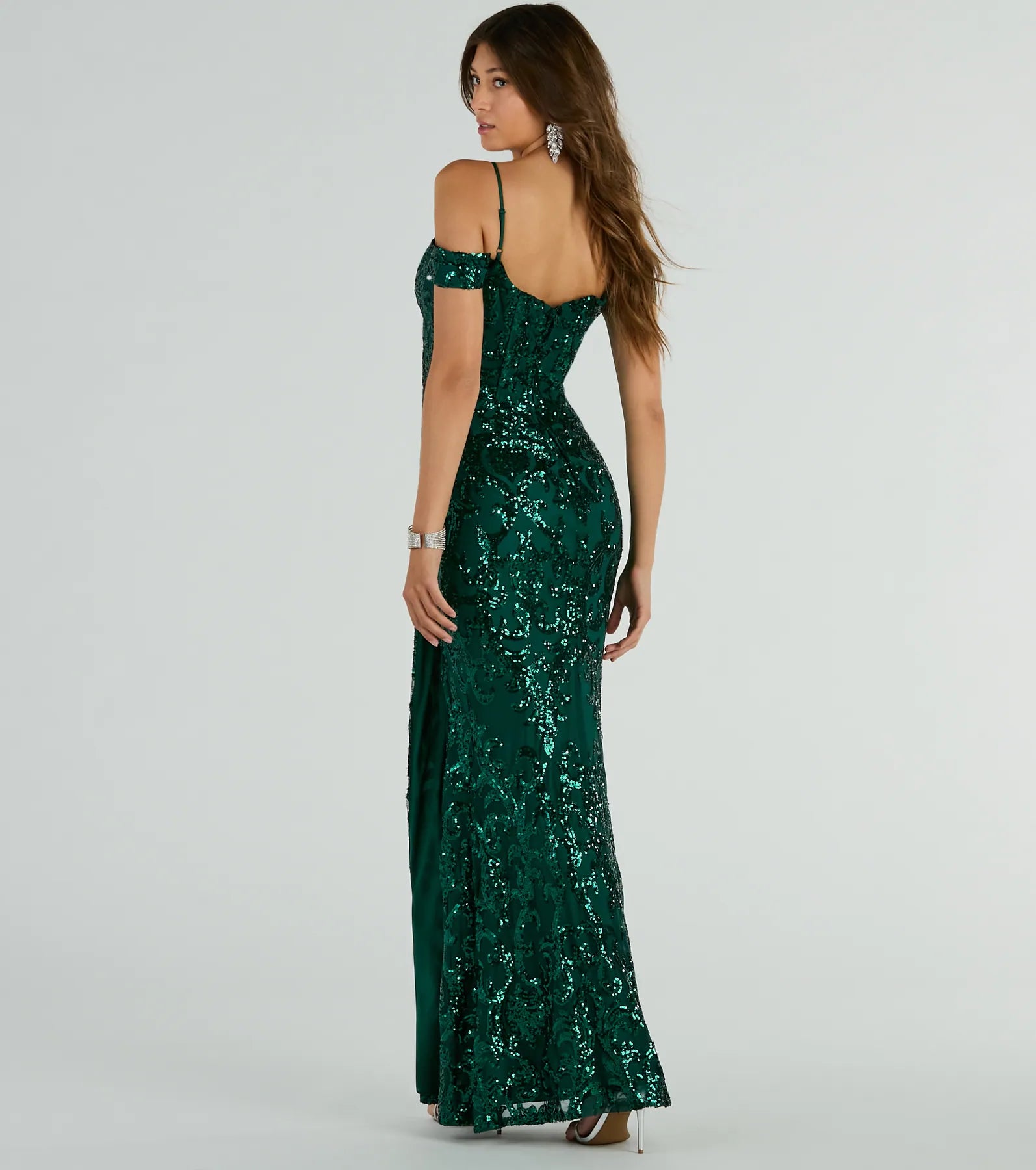 Nevaeh Cold Shoulder Mermaid Sequin Formal Dress