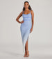 Create the dreamiest vibe for your next fancy affair in the Nia beaded ombre mesh formal dress! Crafted with a sheer mesh fabric lined with knit. she features a stunning ombre design and all-over beaded and sequin embellishments for a gorgeous look. Her bodice is shaped with a sleeveless cowl neckline. adjustable spaghetti straps. and tie-back halter spaghetti straps. Her lower back cutout adds a hint of allure. while her high-cut side slit will showcase some leg. Her slim-fit silhouette will flaunt your beautiful curves. Complete the look with metallic heels.