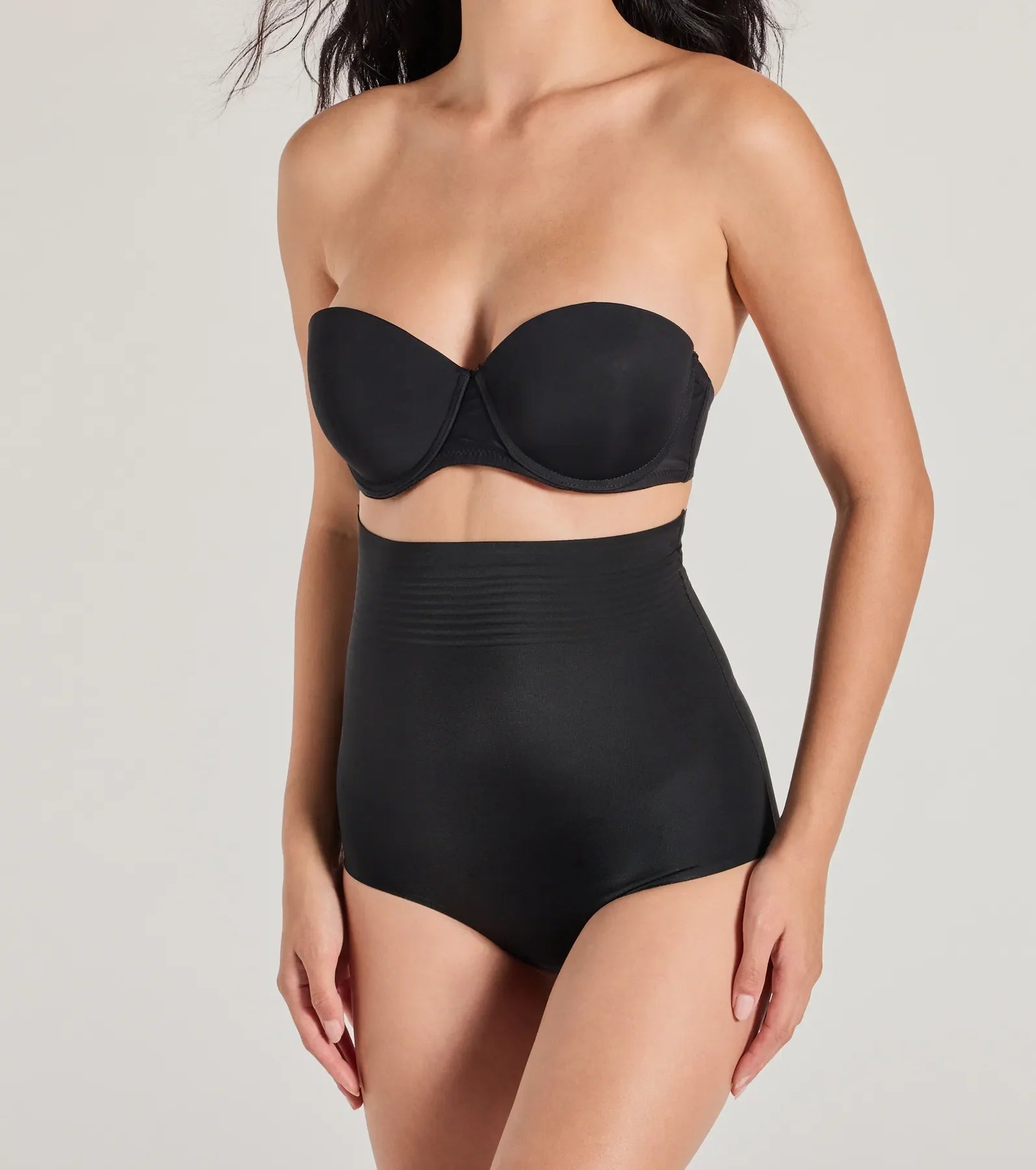 Create a smooth and slimming look with this high-waist brief shaper perfect for achieving an hourglass-like effect under your favorite form-hugging styles! This shapewear underwear offers an extra high waist with non-slip grip linings for plenty of support and is made of an ultra-smooth seamless knit material to enhance your figure under bodycon dresses. skirts. and pants. The brief-shaped silhouette helps to create a smooth appearance with its discreet and seamless design. Pair it with a bodycon dress for a sultry silhouette!