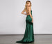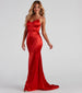 Special OccasionLook oh-so-darling in our sleek satin Nola gown! She features a sleeveless bodice. a V-neckline. and...