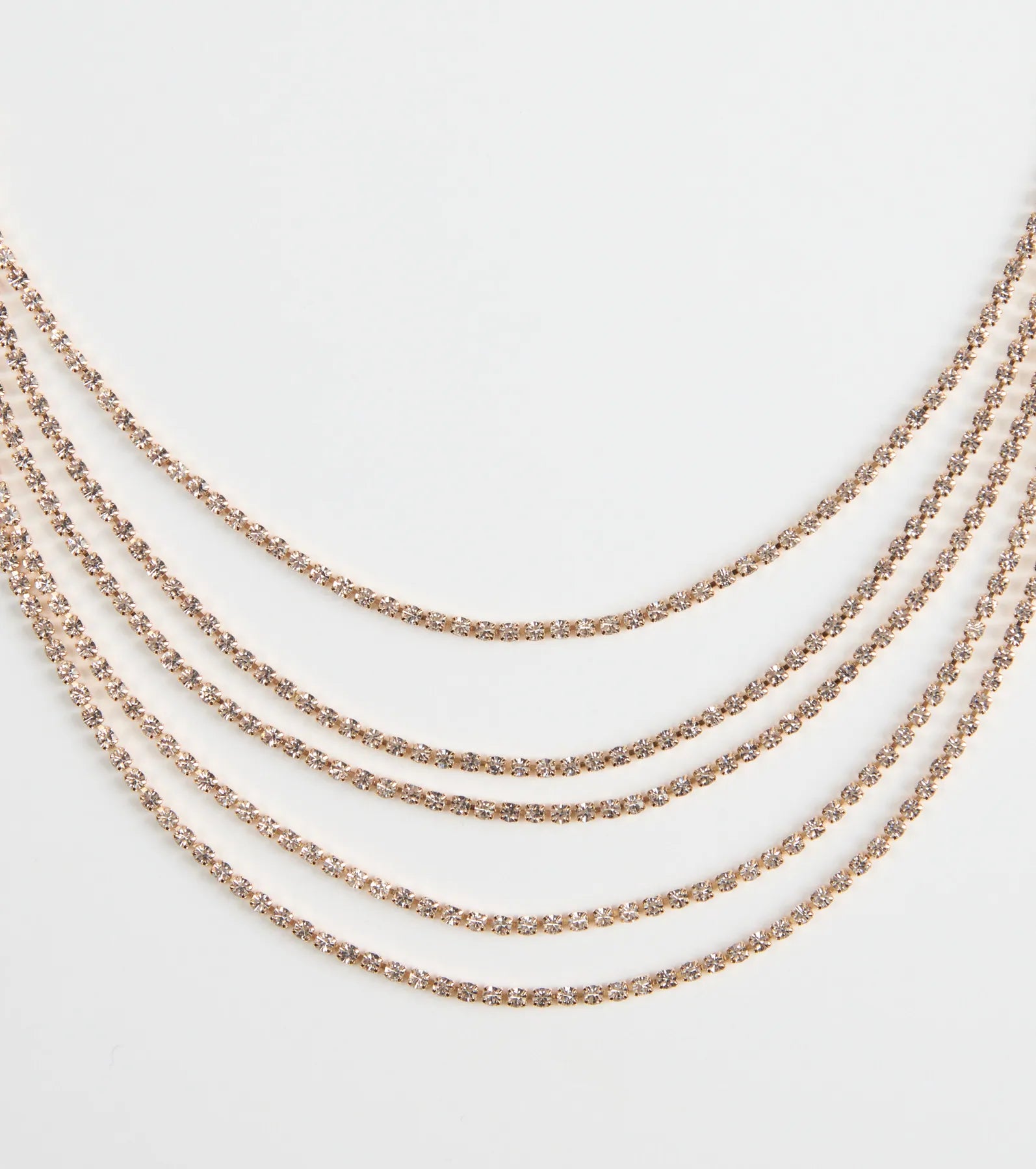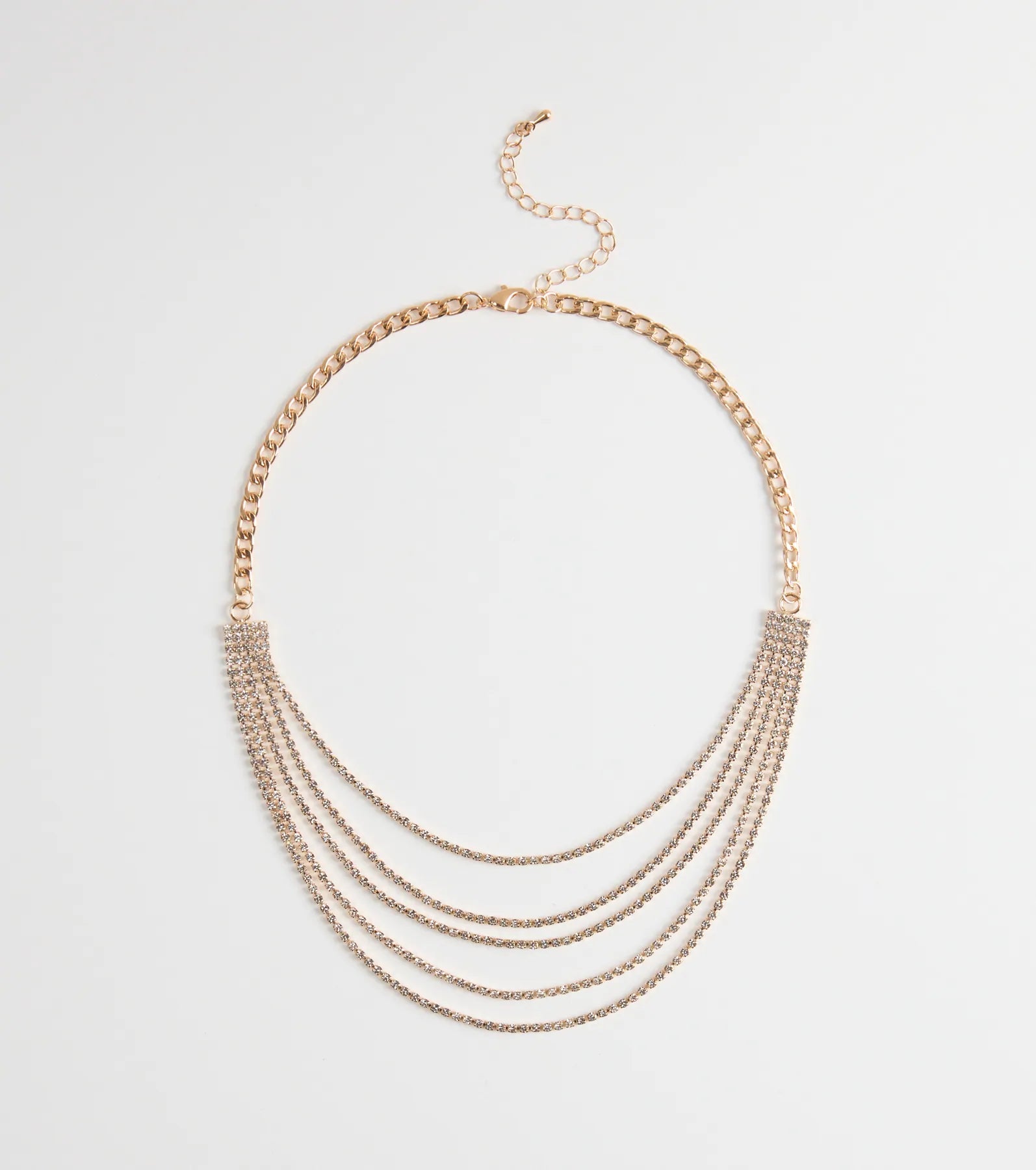 This stunning layered rhinestone necklace adds a touch of sparkle and elegance to any outfit and is...