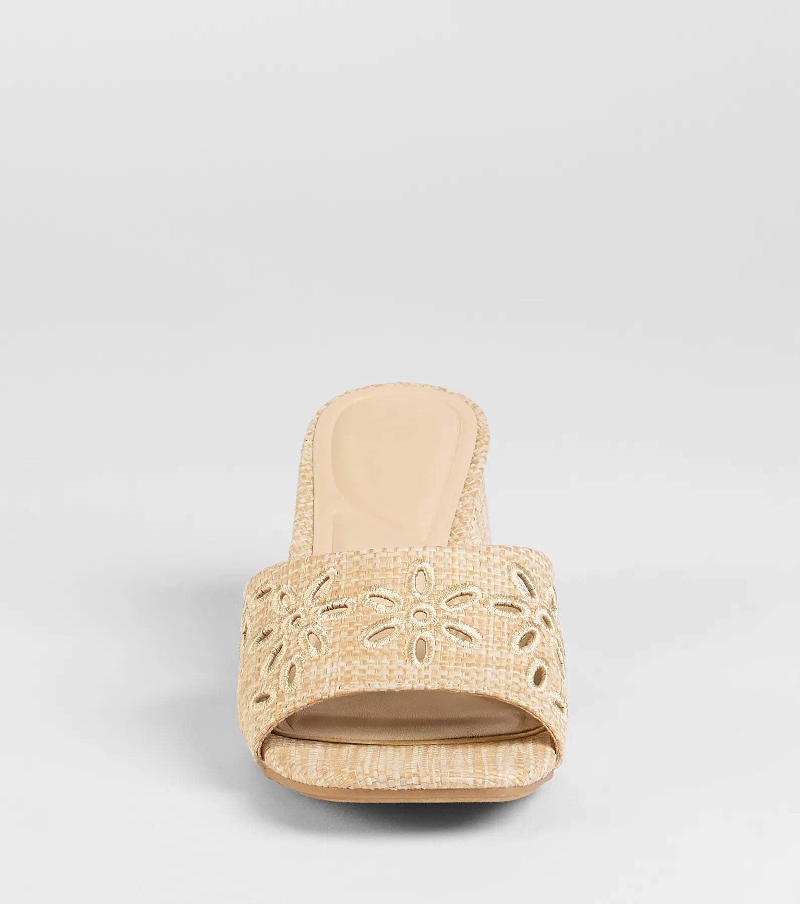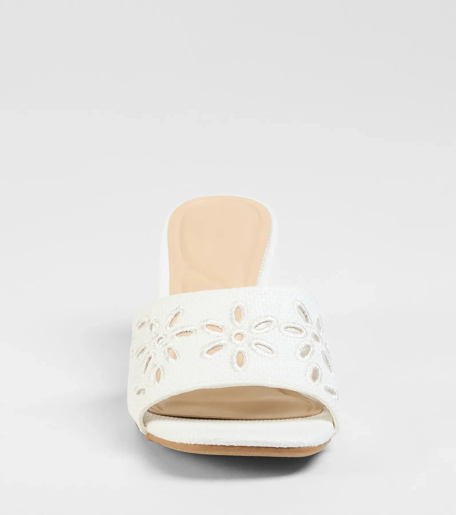 The perfect pair of block heel mules with a trendy floral cutout design that puts the spring...