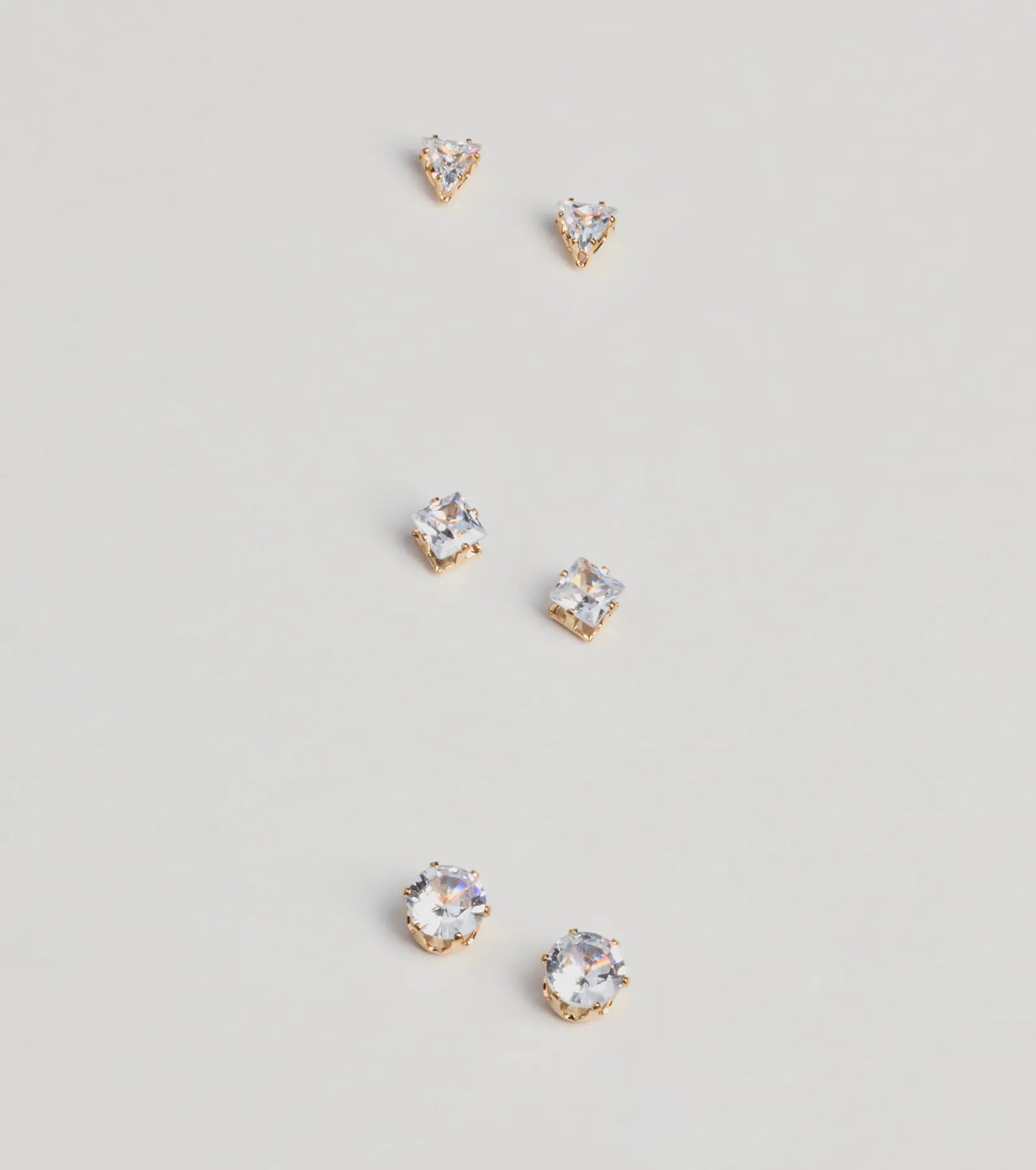 Perfect Set Cubic Zirconia Stud Earrings Pack