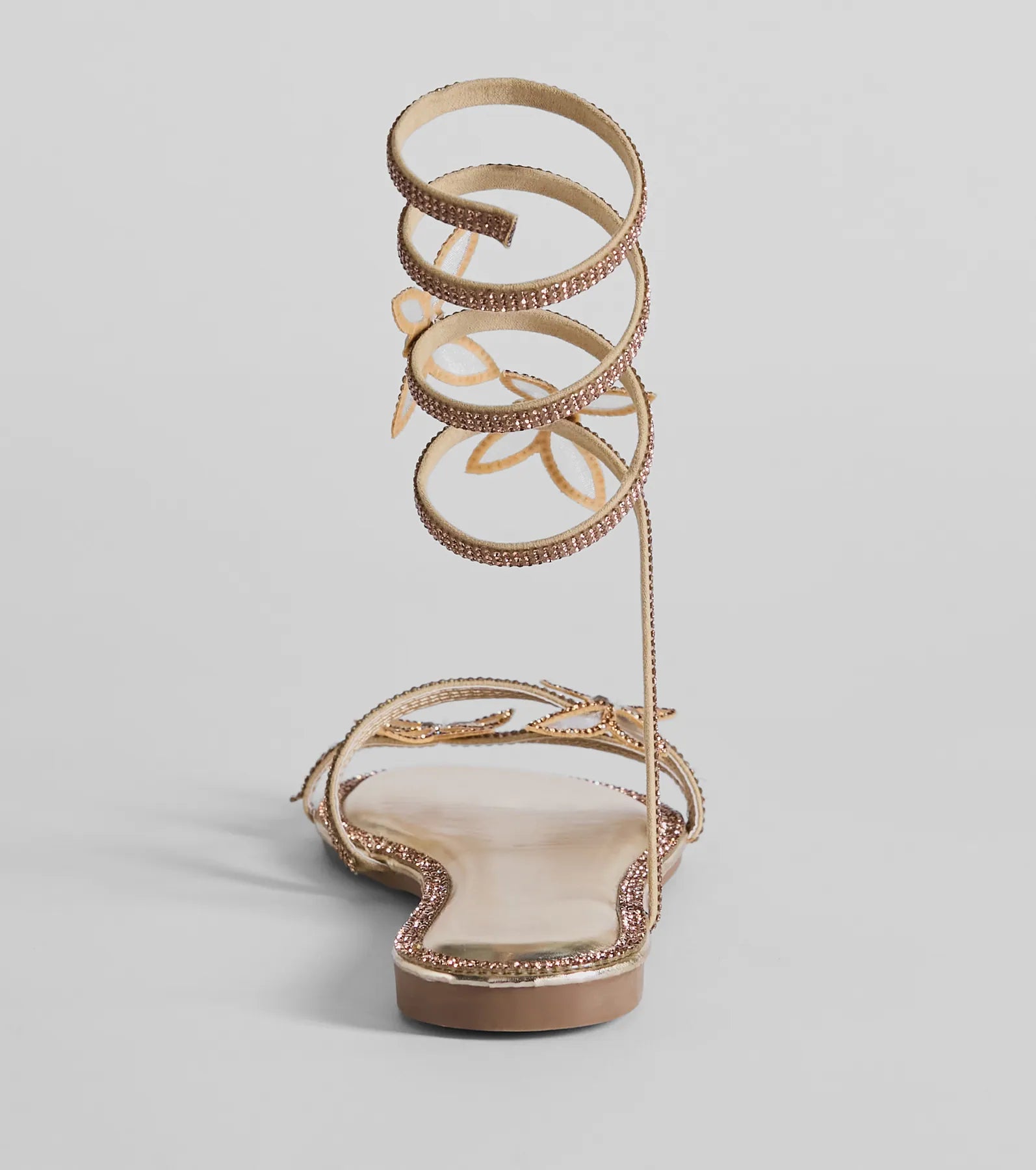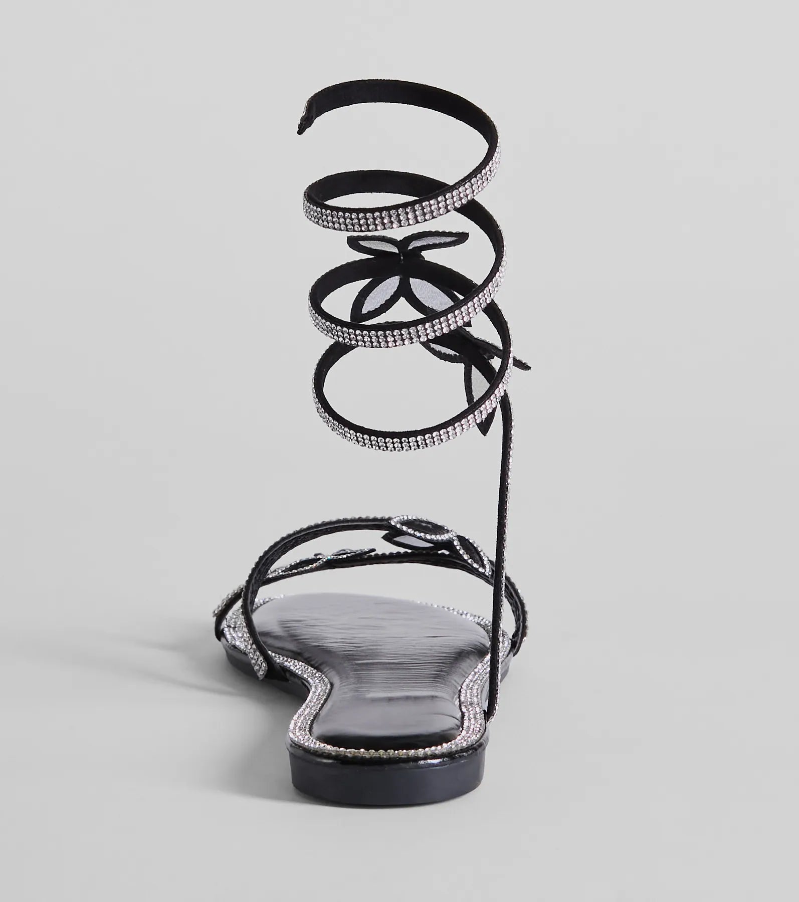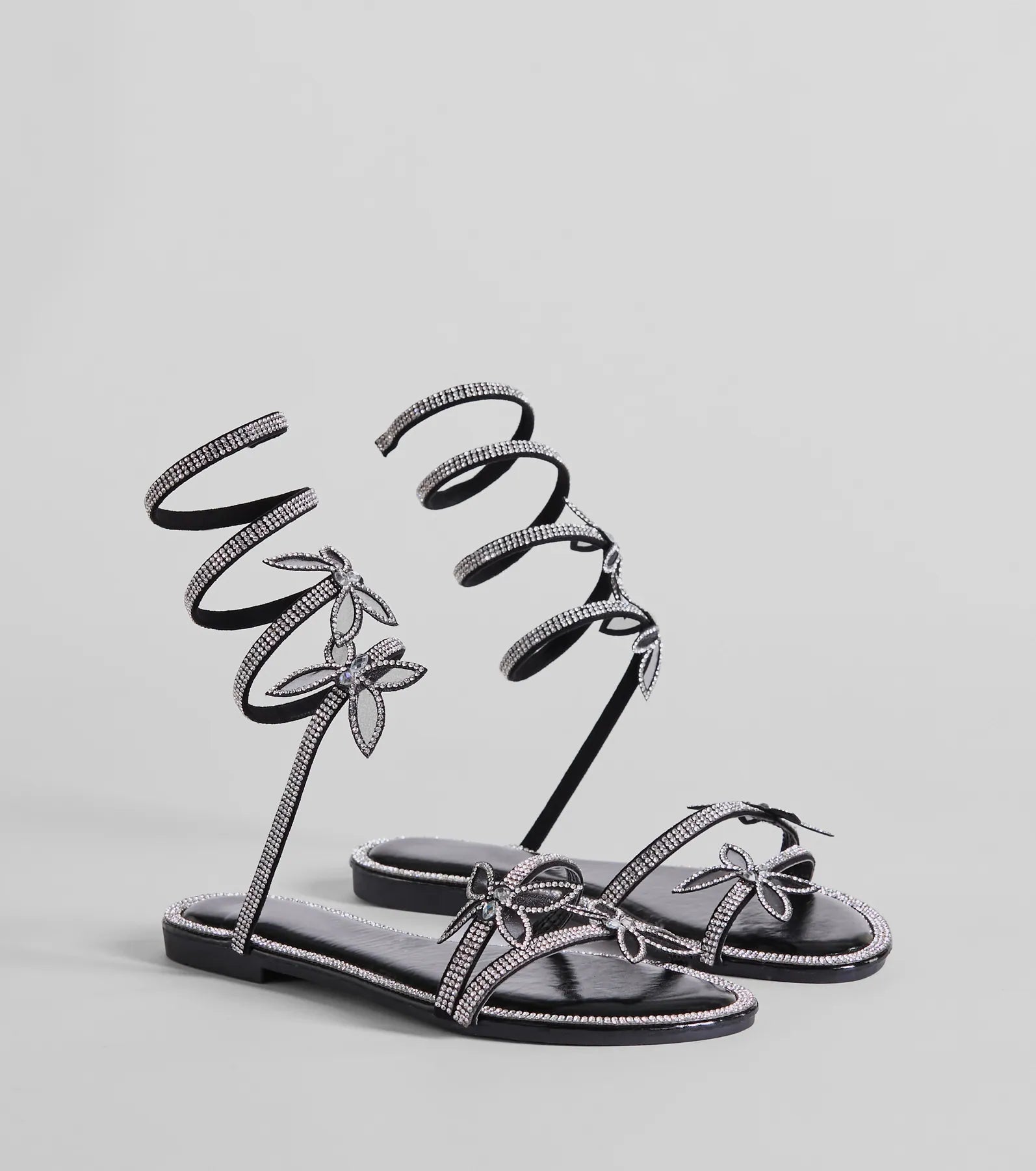 Perfectly Glam Rhinestone Butterfly Spiral Strap Sandals