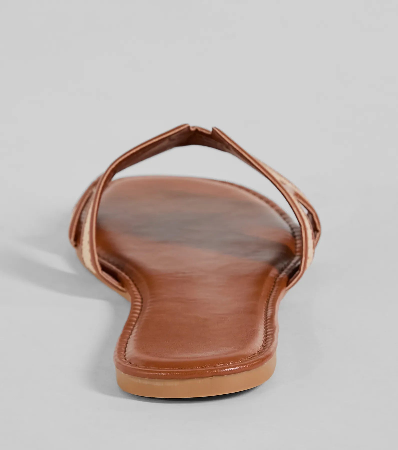 Pop Of Cute Straw Faux Leather Flat Sandals