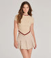 This rib knit top features short sleeves and a striped crew neckline and a pointed crop hem...