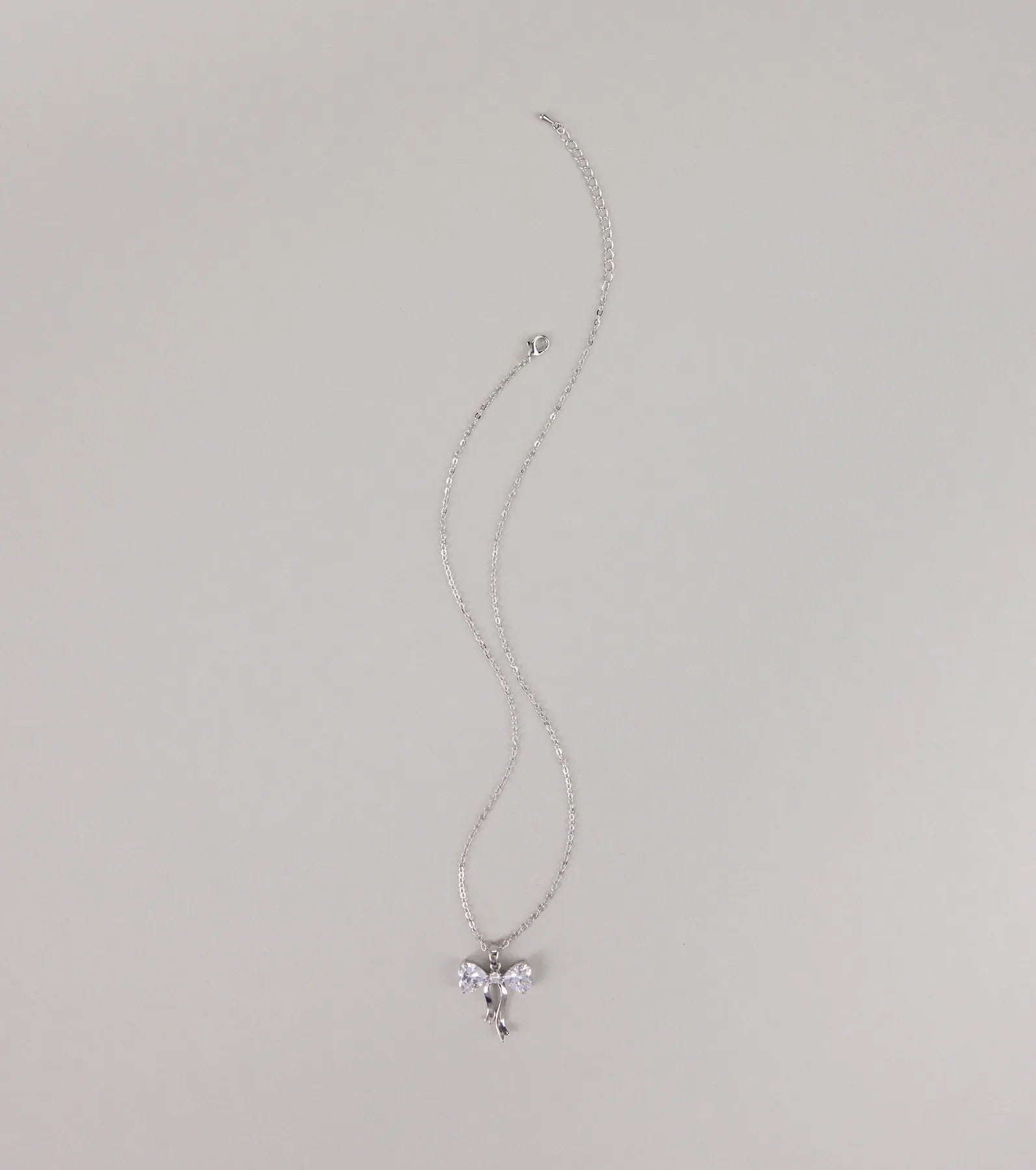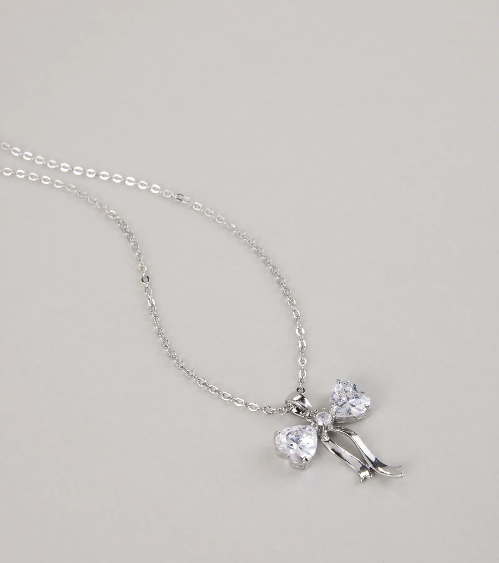 Pretty And Polished Cubic Zirconia Bow Necklace