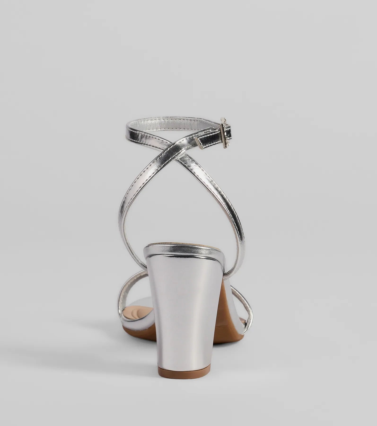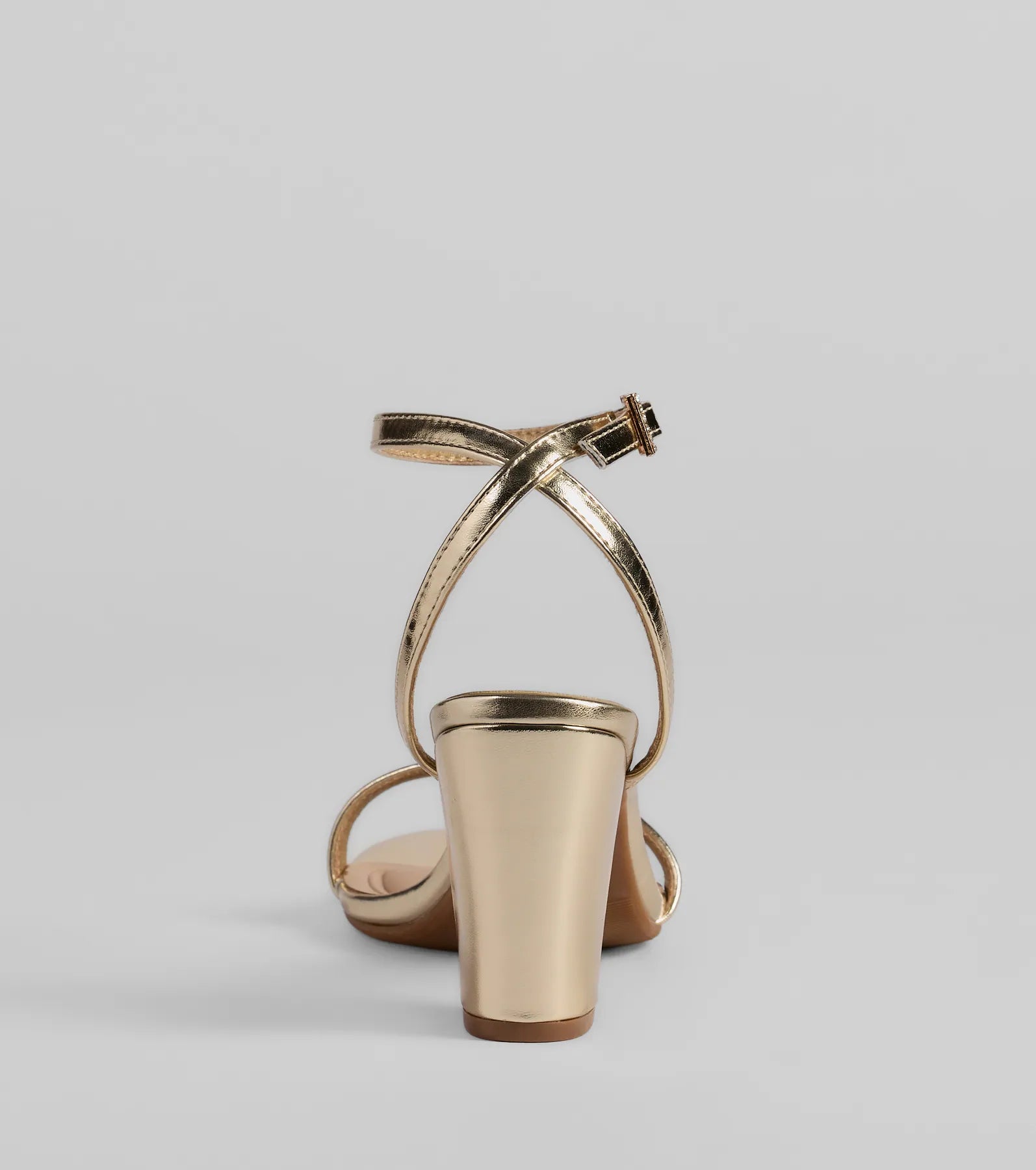 Step out in these pretty metallic block heels to dress up any outfit! They showcase a sleek...