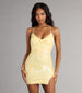 This sequin mini dress is cut to flatter with a bodycon fit and a sultry strappy open...