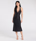 The smooth knit dress features a sleeveless halter neckline. mini bar strap accents at the bust with...