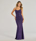 Special OccasionThe long mermaid dress features a glitter knit fabrication. a sleeveless cowl neckline. spaghetti straps that...