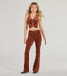 Dive into retro vibes with these chic corduroy high-rise flare pants. Featuring a flattering fit and classic...