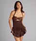 Snatched on top. flowy on the bottom. This satin skater dress hugs the bodice just right and...