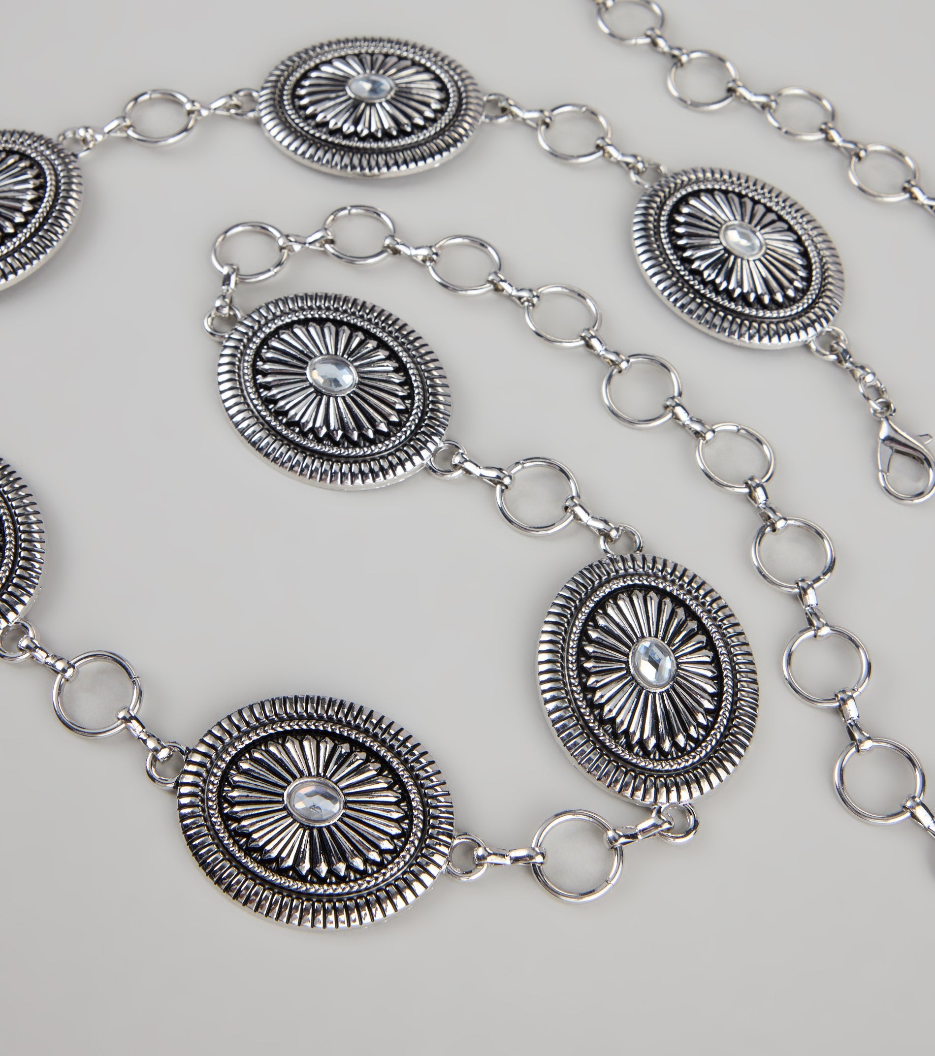 A little western. a little glam—this oval concho chain belt is your shortcut to spicing up dresses....
