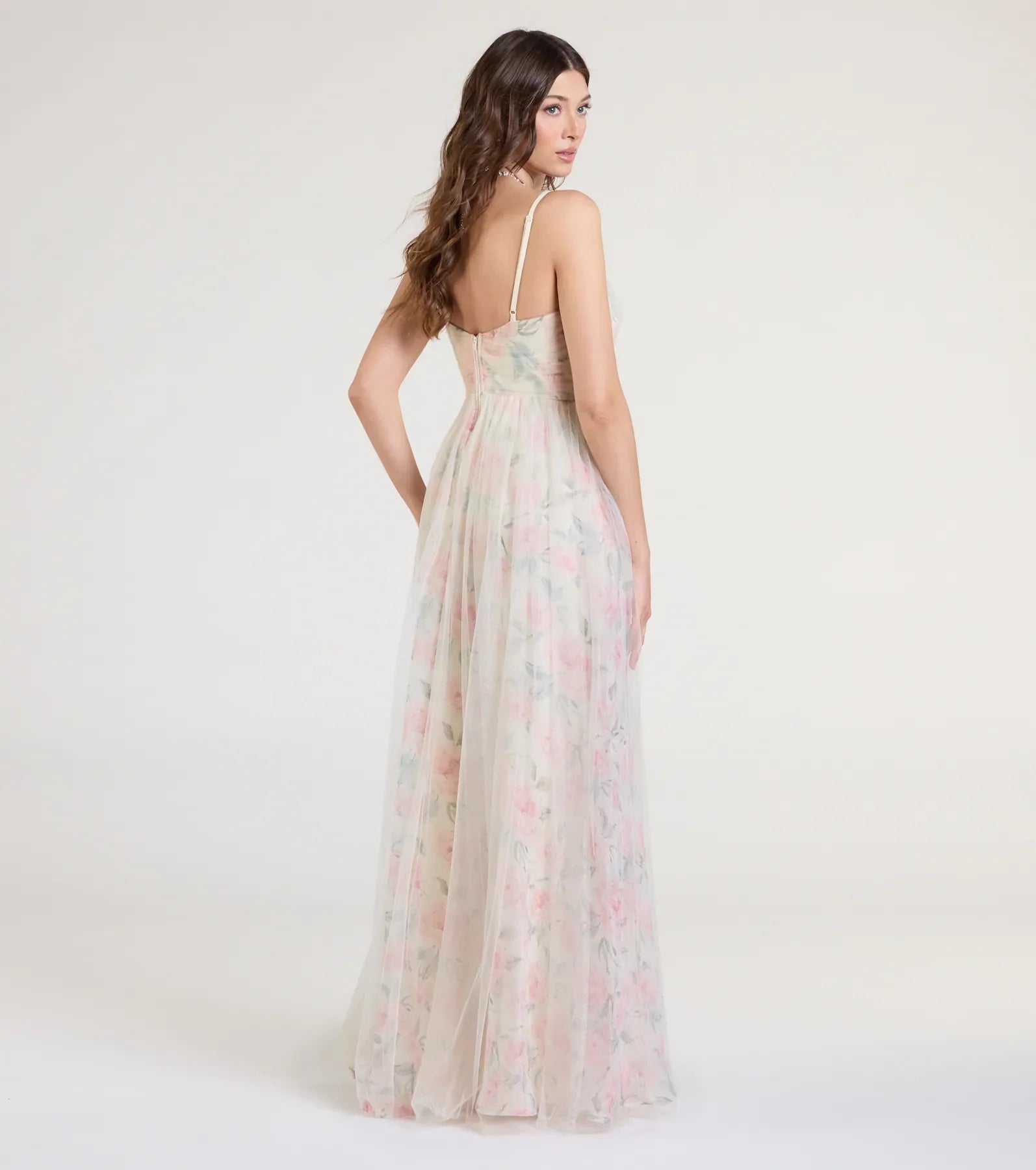 Special OccasionA beautifully romantic floral print decorates the Samaria lace tulle formal dress with a chic sweetheart...