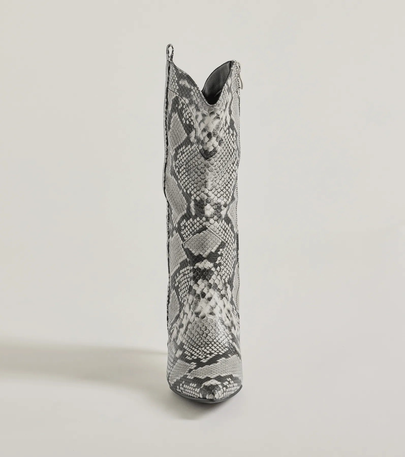 Sassy Aura Faux Leather Stiletto Snake Boots
