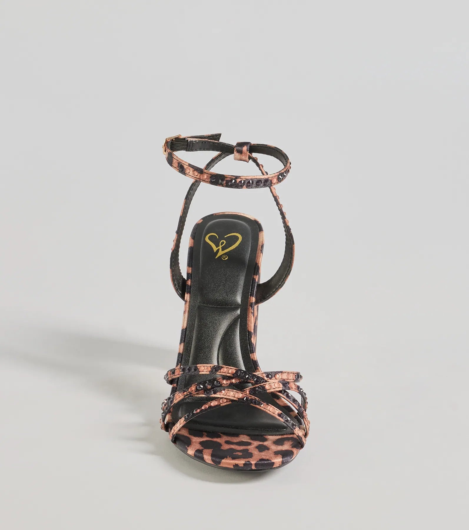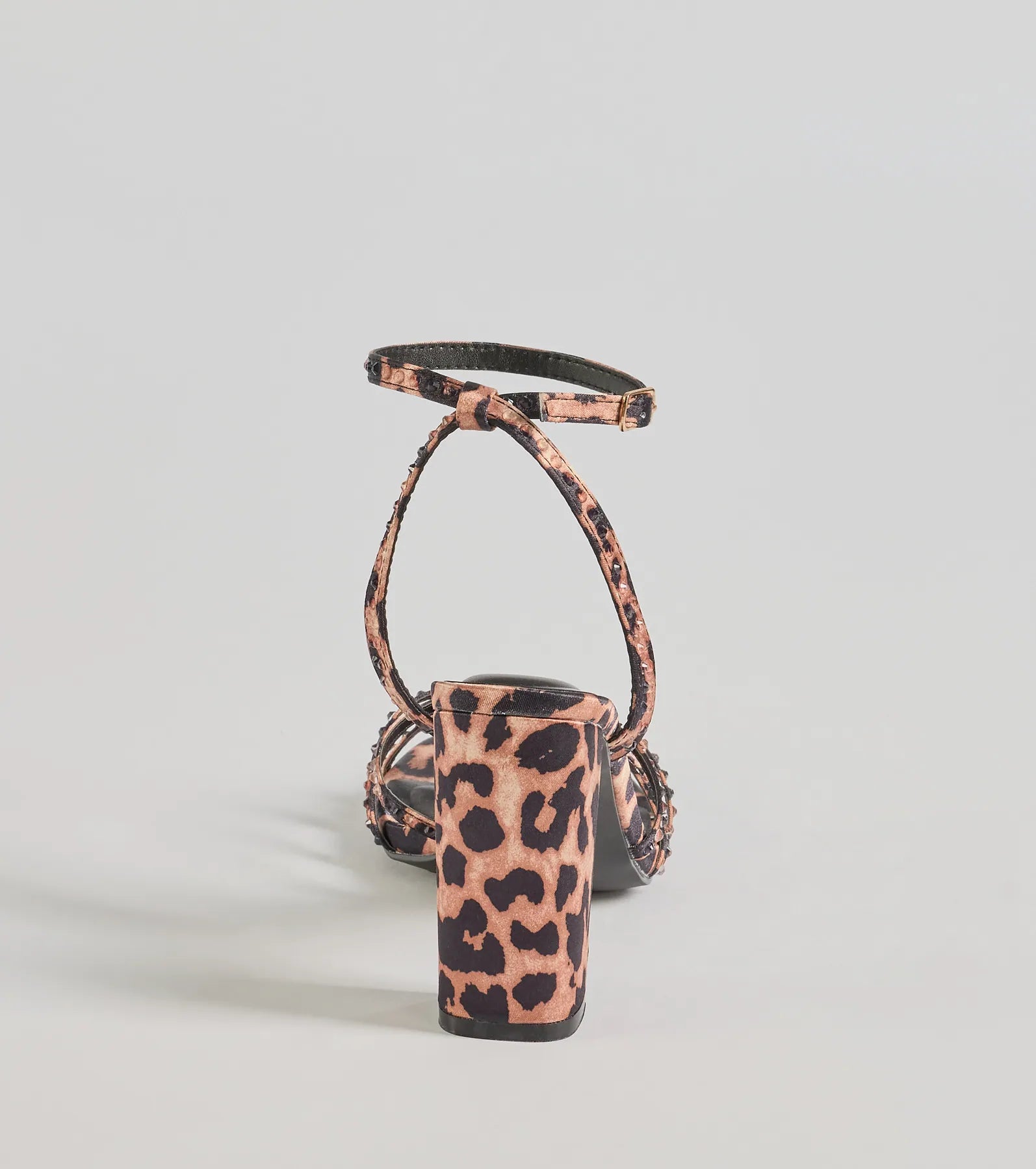 Sassy Rhinestone Strappy Leopard Print Block Heels
