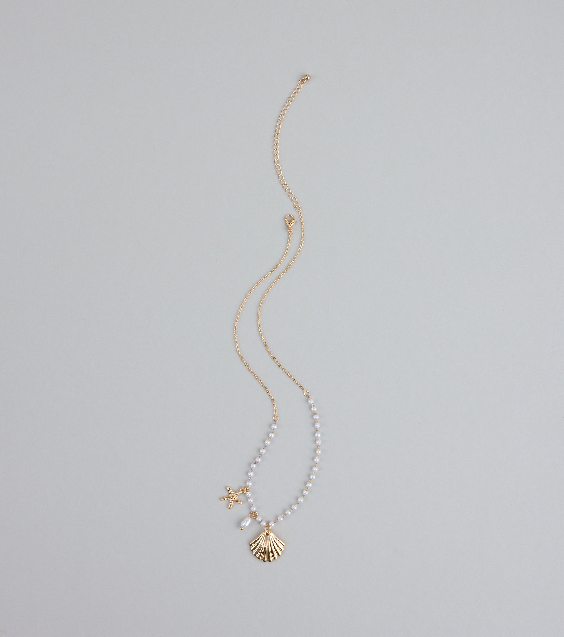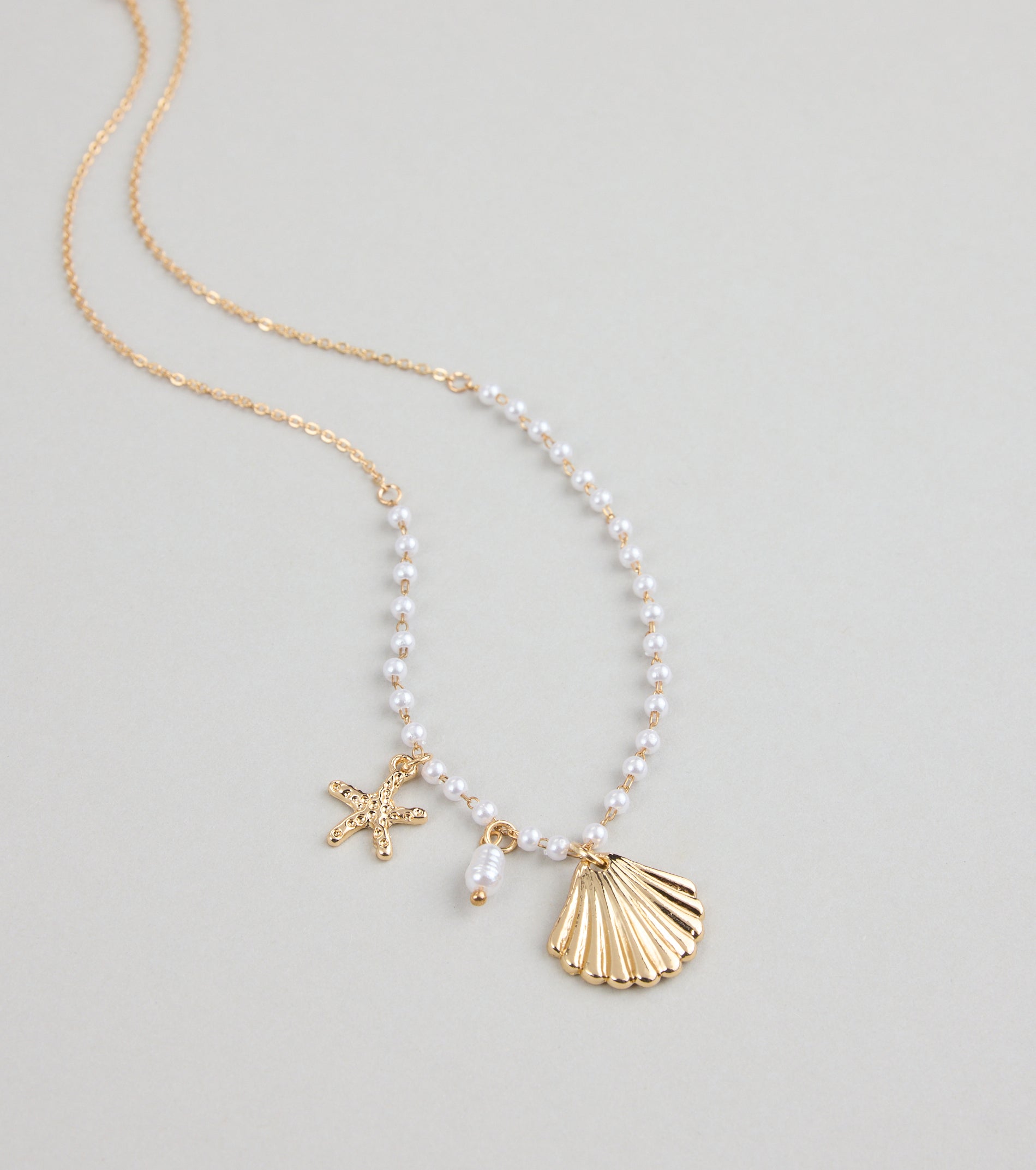 Giving total mermaid-on-vacay energy—and we're obsessed. This pearl and charm necklace brings soft glam with a splash...