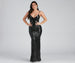 Showcase your show-stopping looks in the gorgeous Serena mermaid dress. She features a sleeveless bodice. adjustable spaghetti straps. a deep V-neckline with padding. and a backless design with a lace-up closure that lets you adjust the fit. Her high waist seam leads to a floor-length. curve-hugging mermaid silhouette for a chic factor. The dress is composed of a sheer mesh fabric with an all-over intricate sequin design and includes a stretchy knit lining. Complete your outfit with radiant earrings and a rhinestone cuff.